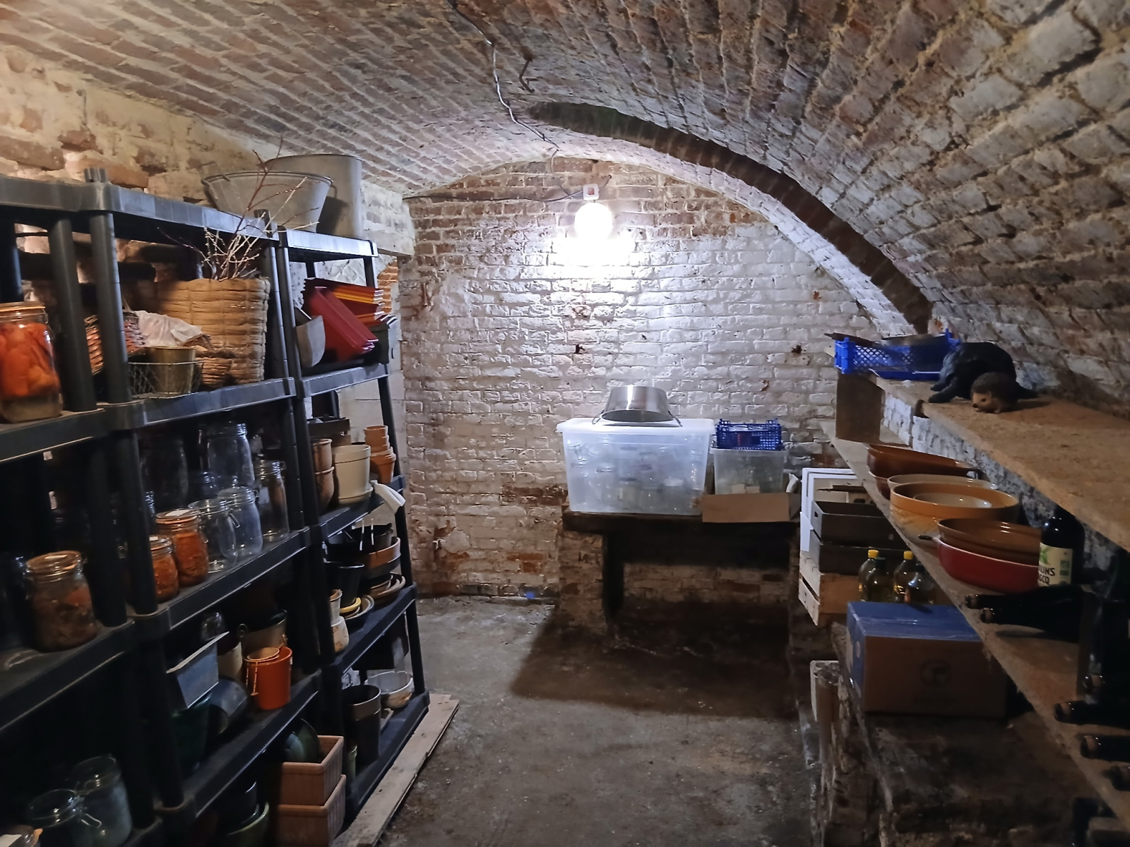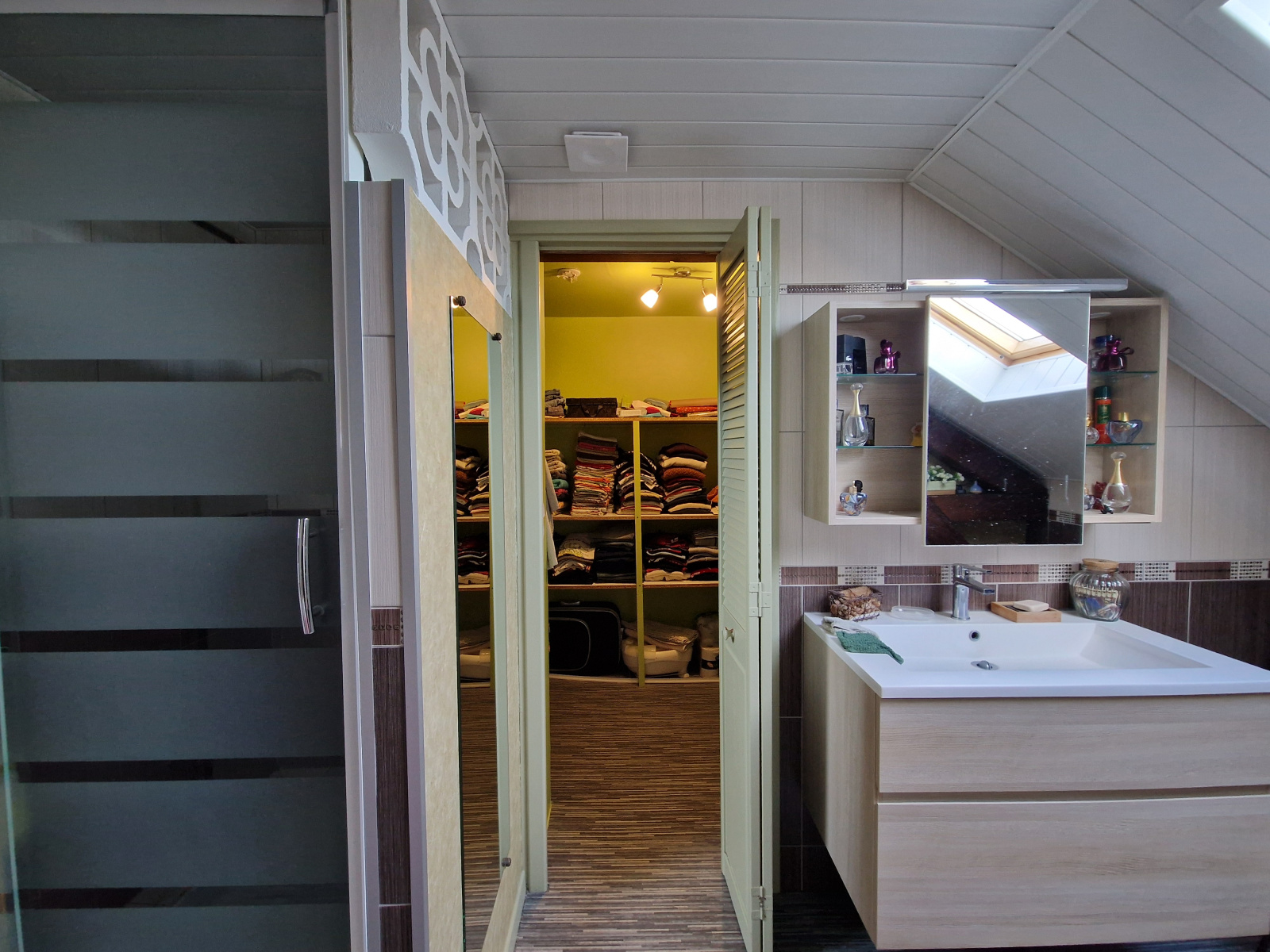 Etage: Palier desservant: 3 belles chambres avec rangements, une salle de douches avec dressing. Une Grande cave voutée compartimenté.