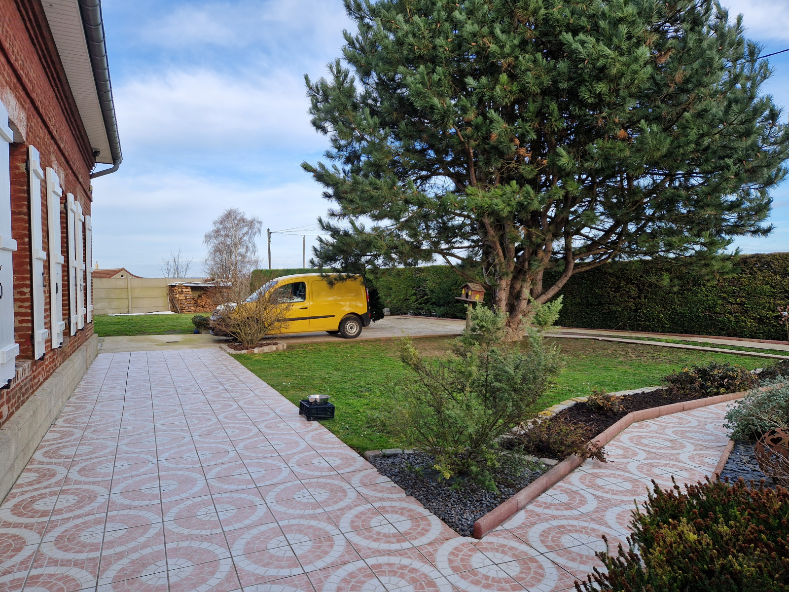 Un grand jardin de 1050 m² avec une terrasse, une petite dépendance, deux carports( 1 abris vehicule) possibilités de stationner plusieurs véhicules, clos sans vis à vis.