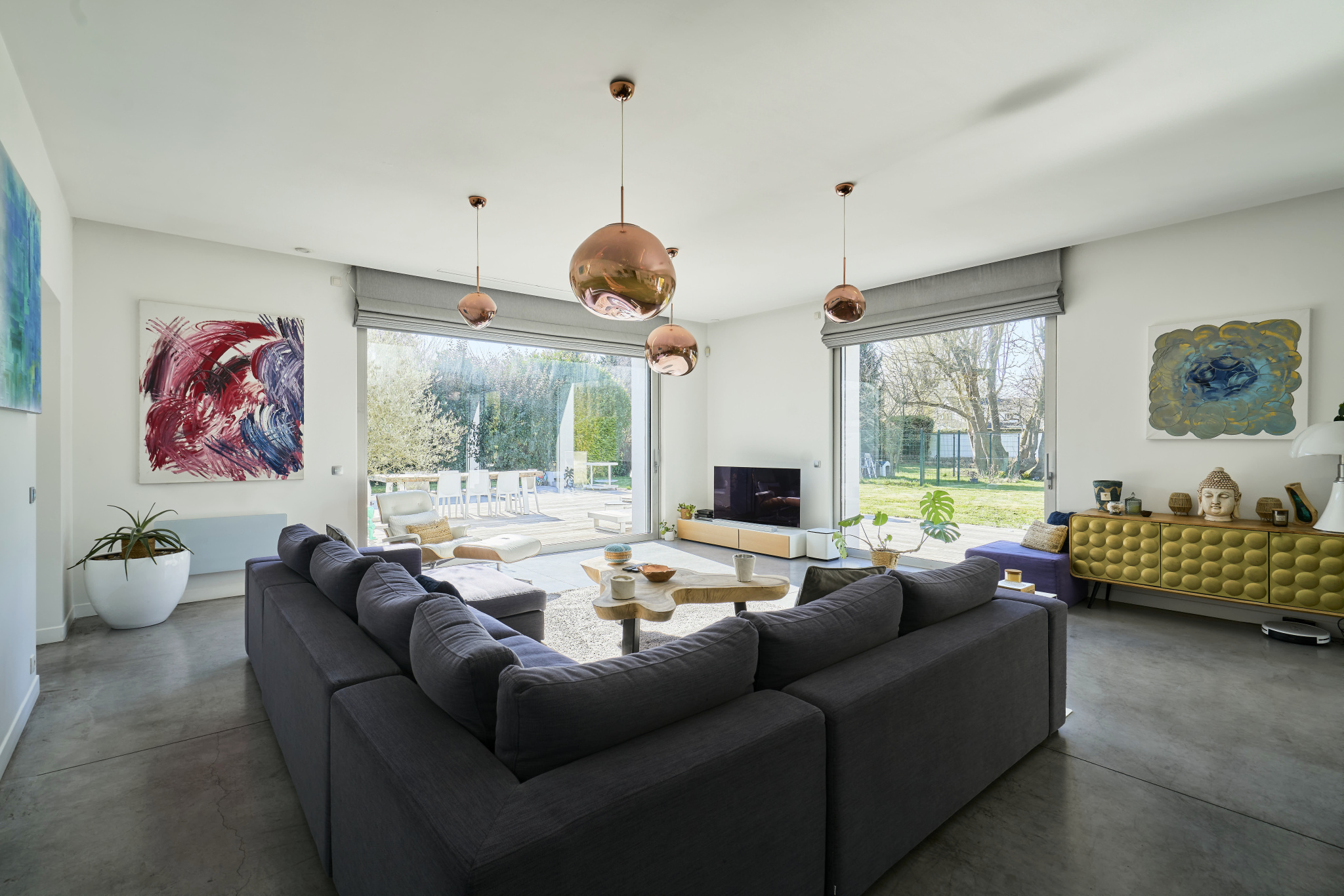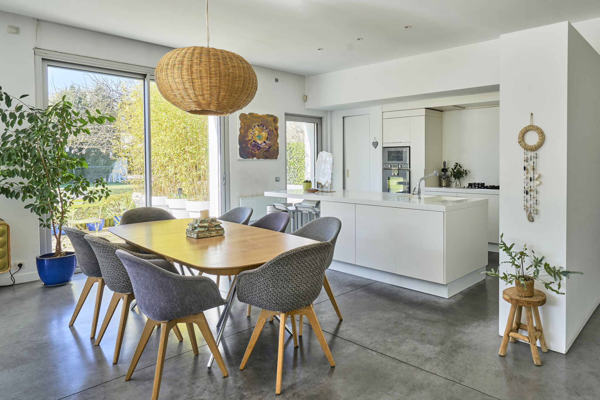 Une belle entrée vous mène à un spacieux séjour aménagé avec goût et modernisme, que les immenses baies vitrées à galandage baignent de lumière. Béton ciré au sol donnant un esprit loft certain. Cuisine ouverte entièrement équipée de matériaux hauts de gamme, 4 chambres aux volumes généreux, dont une suite parentale donnant sur la piscine aux abords d’une terrasse ensoleillée sud / sud-ouest.