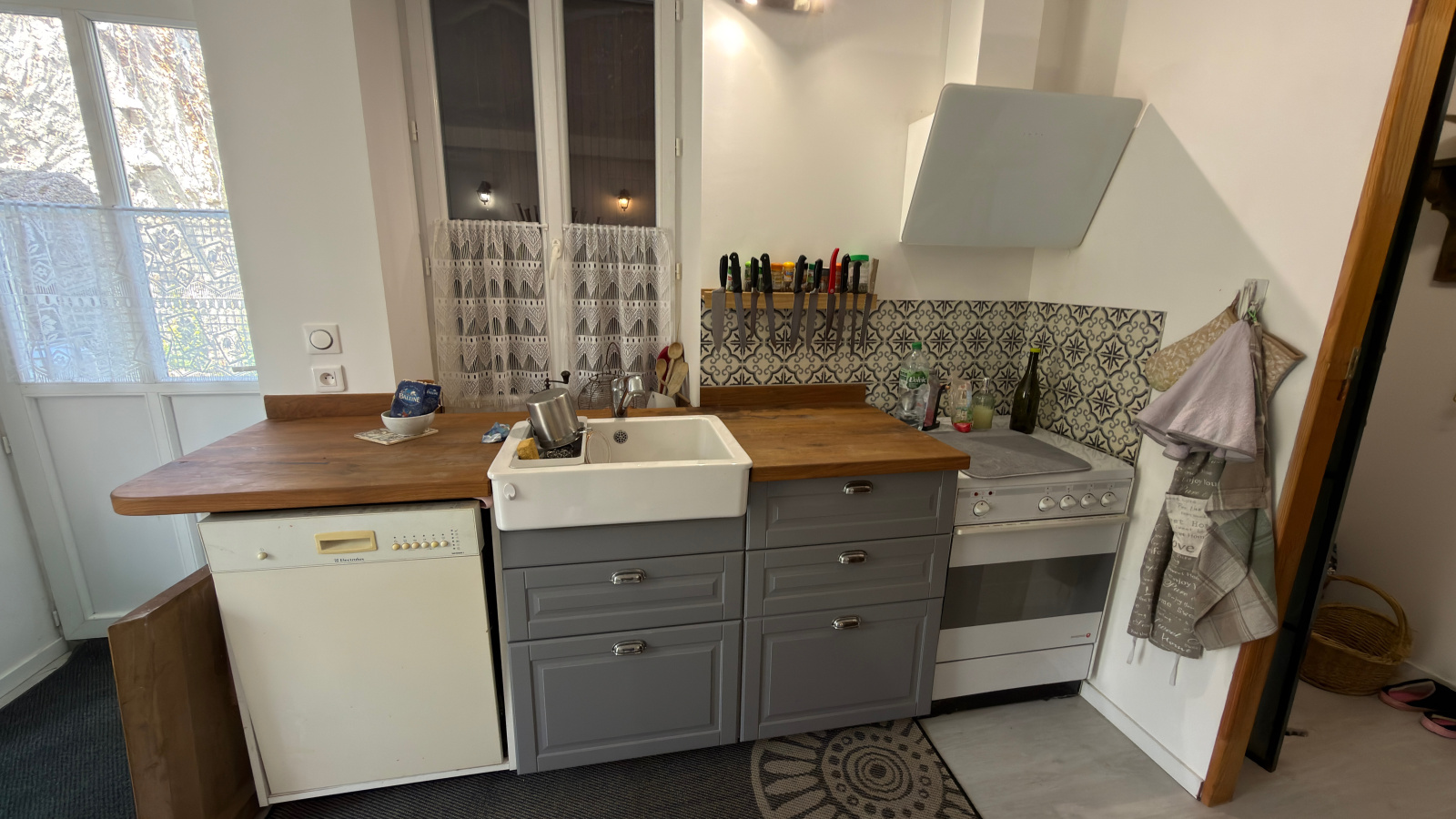 proprieté édifiée sur cave avec chaufferie , rdc cuisine aménagée équipée , grand sejour , douche wc, laverie reserve. jardinet.