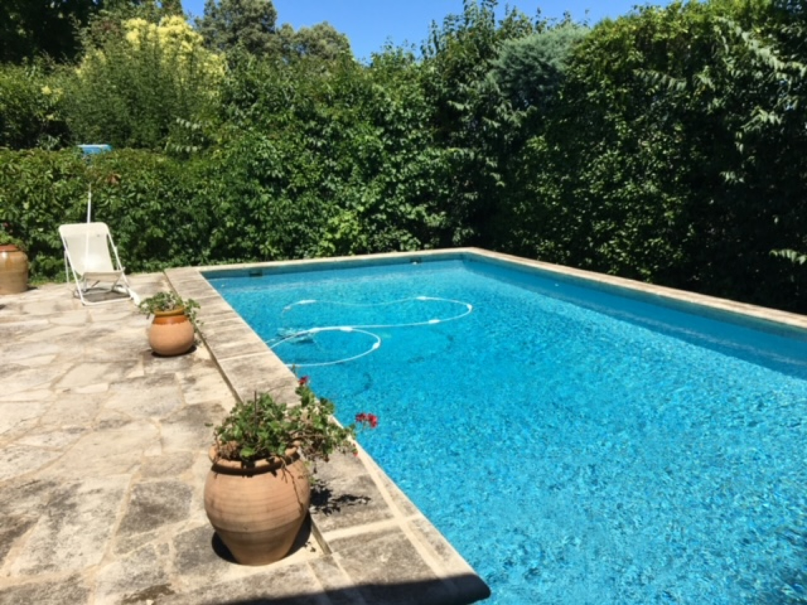 Terrain arboré de 1000m2 sans vis à vis avec piscine et garage.