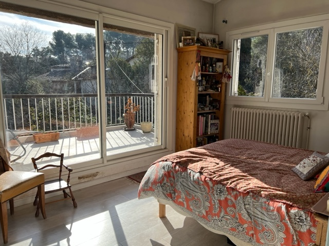 Exclusivité La Magnaneraie, Caroline Jourdan Expertimo vous propose : Dans un secteur très recherché au calme et proche du centre historique, maison d'environ 155m2 offrant une entrée, un grand séjour de 40m2 avec cheminée, cuisine indépendante, cellier, 5 chambres dont 3 au rez-de-chaussée et 2 salles d'eau.