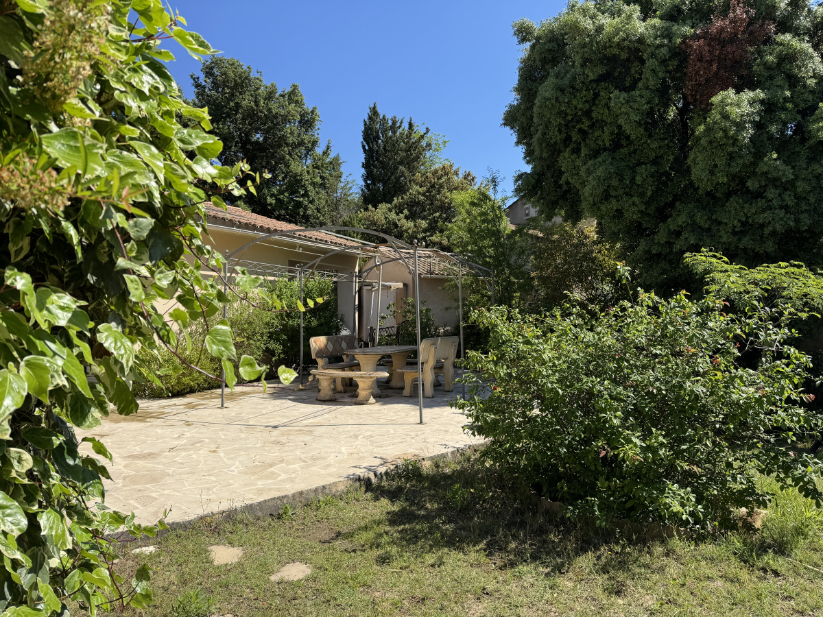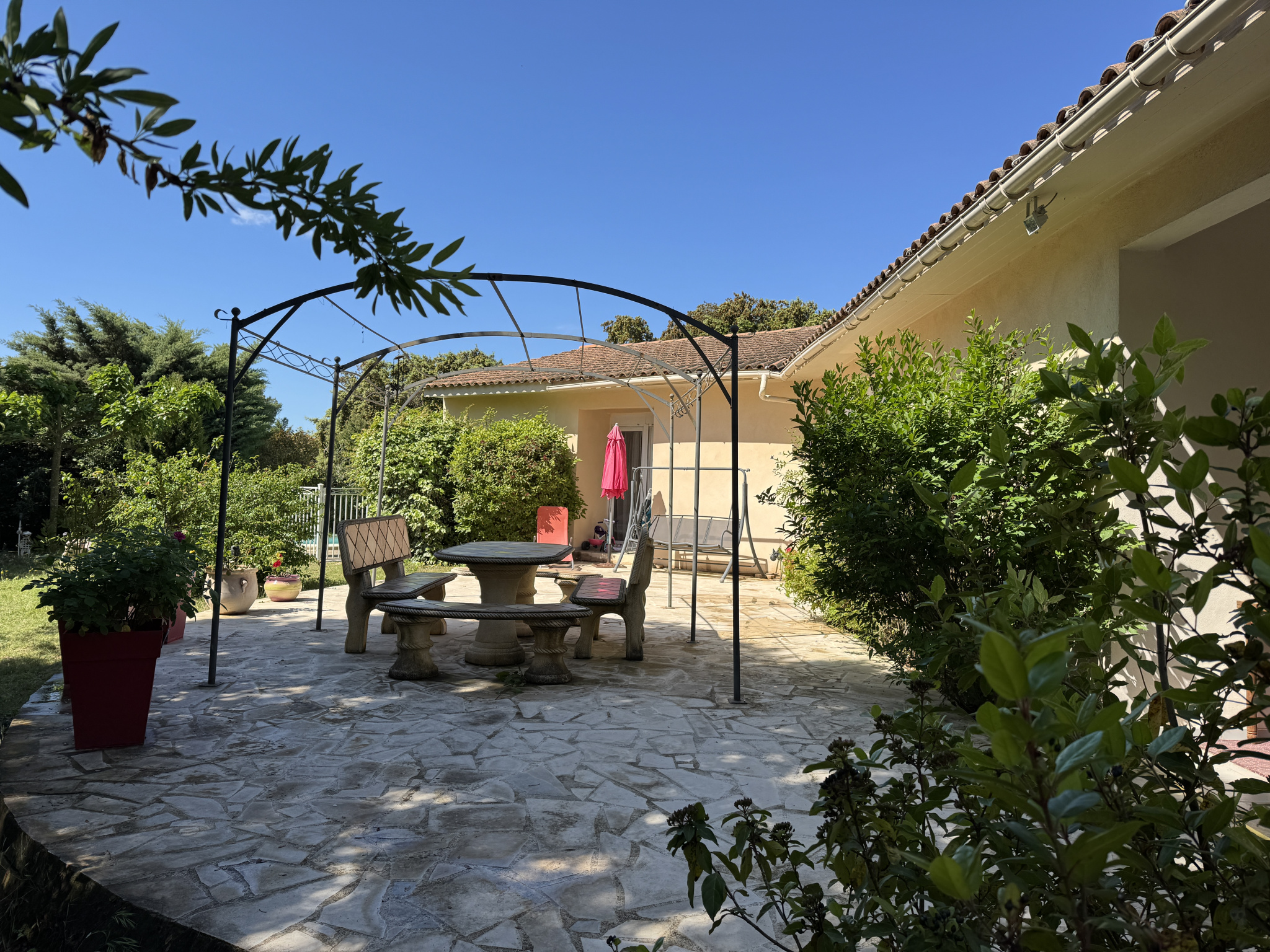 Jardin arboré de 1034m2 avec grande terrasse, piscine, studio indépendant et parking. A visiter sans tarder !