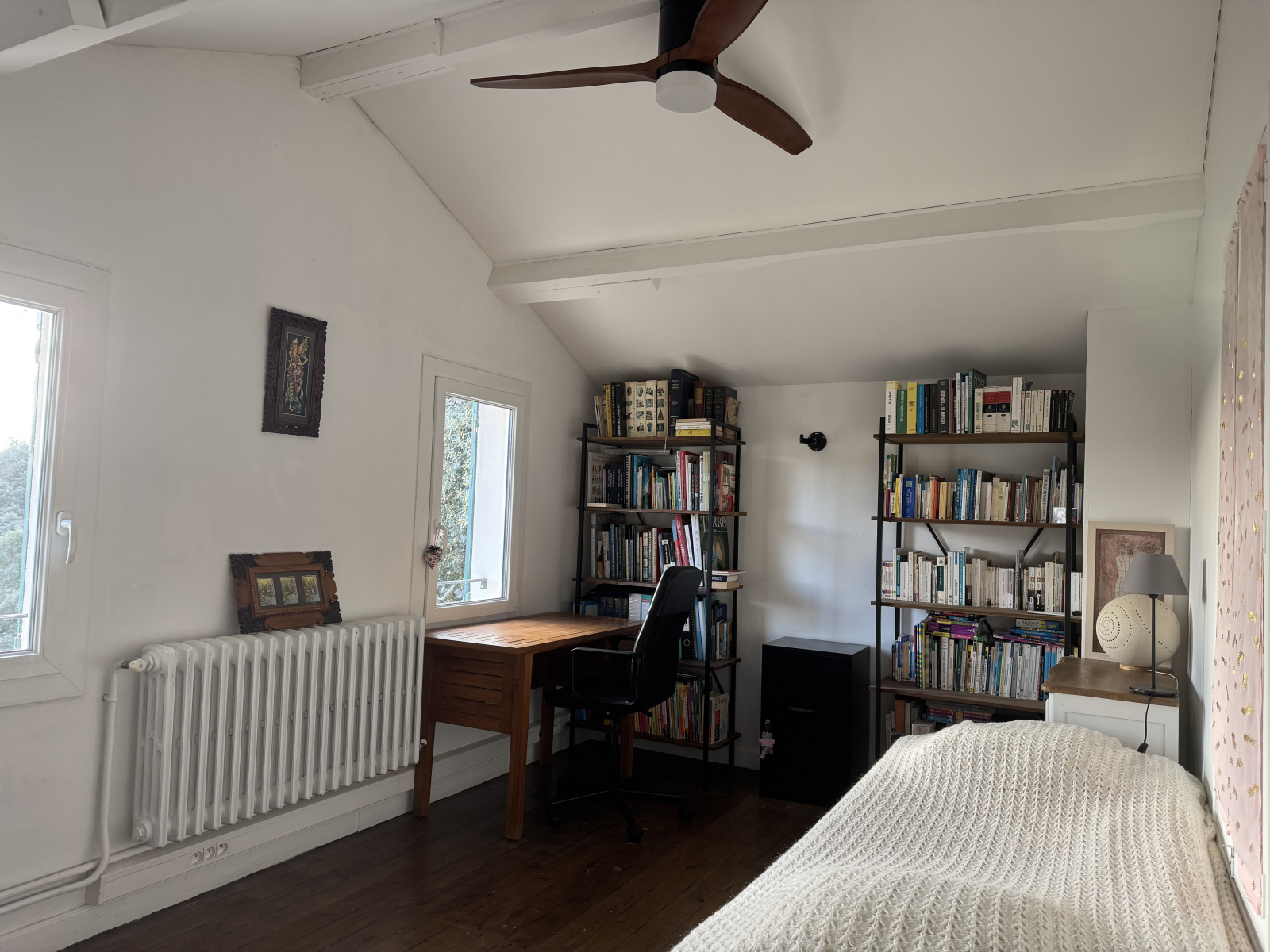 L'étage accueille quatre chambres de bonne taille avec leur salle d'eau, dont deux mansardées rappelant le cachet de la maison d'origine.