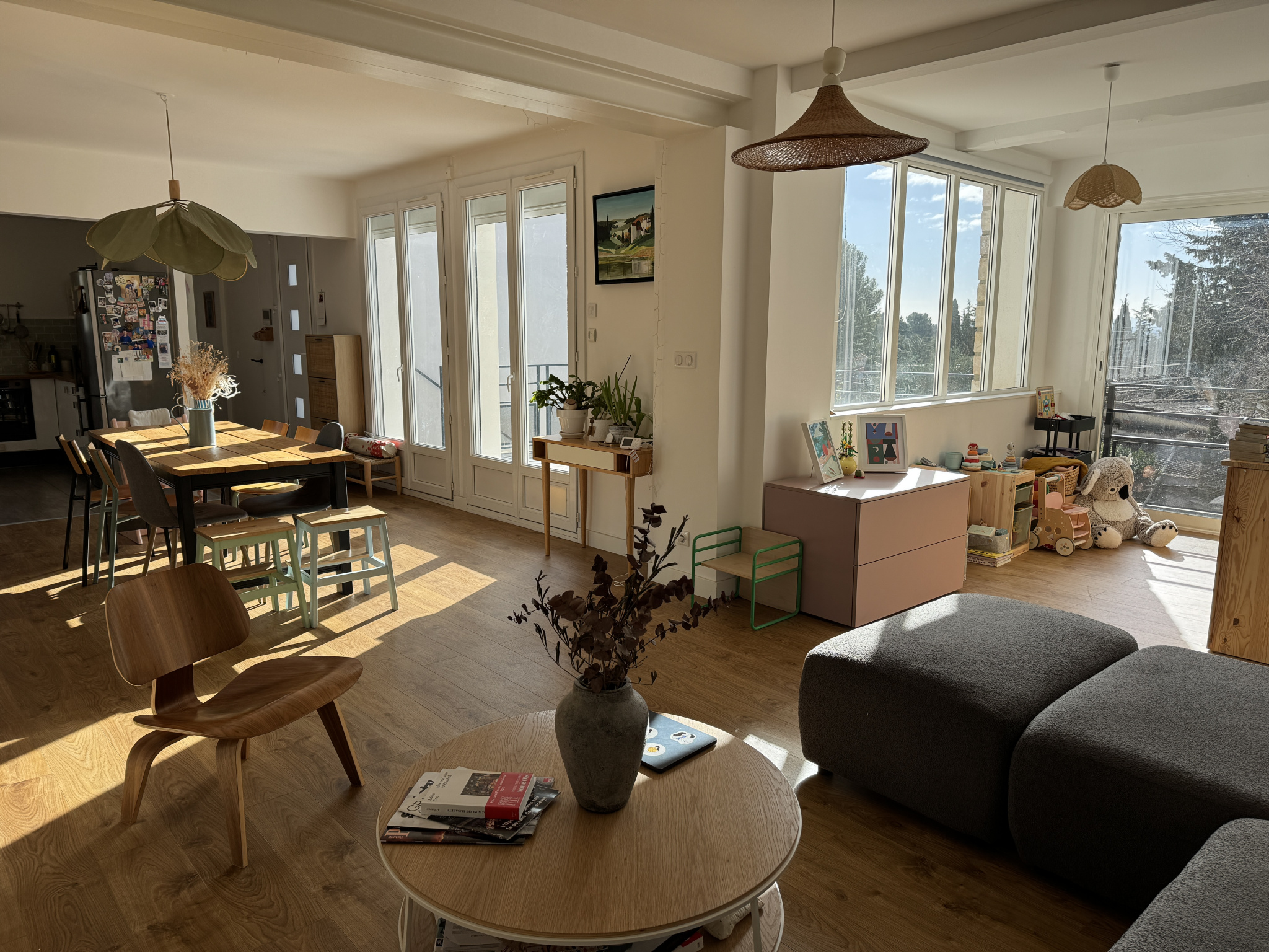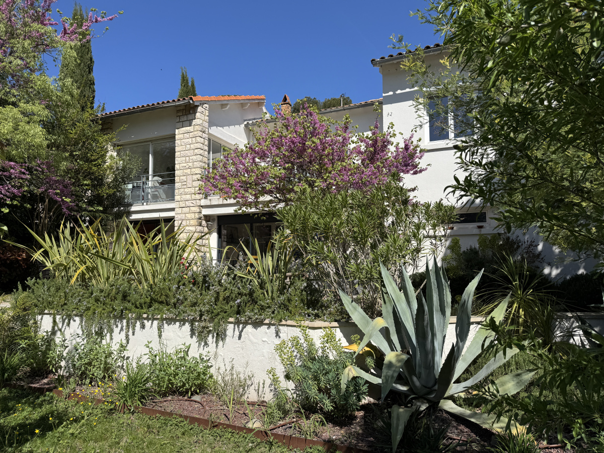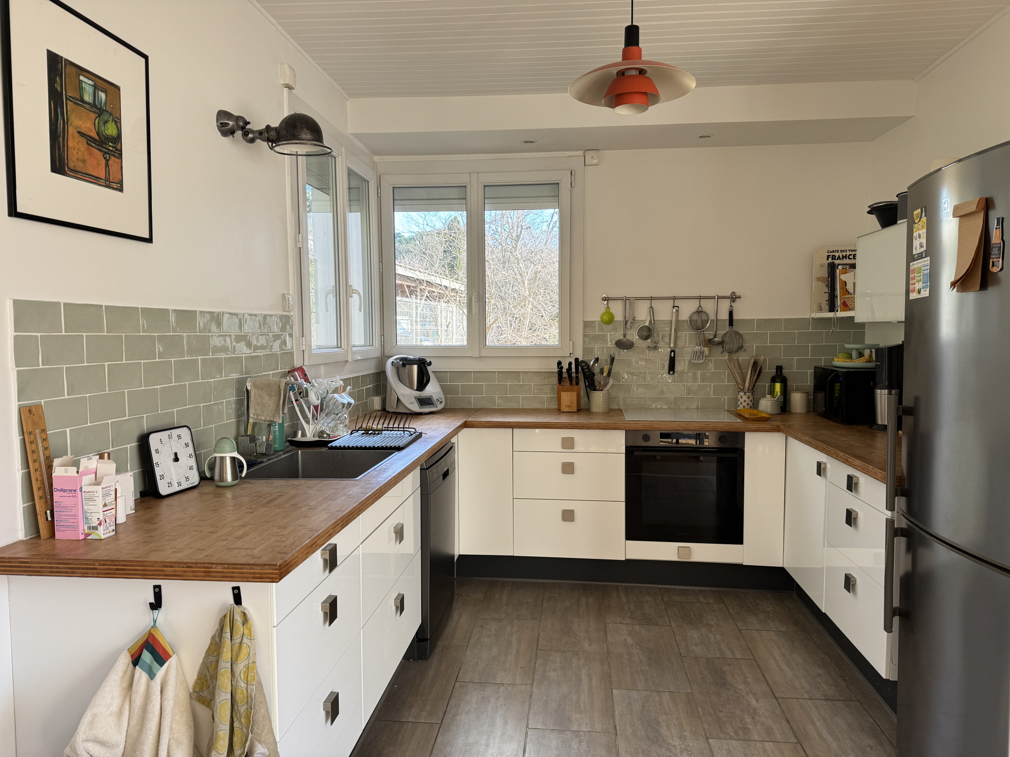 Caroline Jourdan Expertimo vous propose : Dans un secteur recherché et proche de toutes commodités, cette maison des années 50 d'environ 162m2 bénéficie d'un emplacement privilégié et d'un bel ensoleillement tout au long de la journée. L'habitation principale se développe à l'étage, offrant un cadre de vie lumineux et agréable avec une vue dégagée. La pièce de vie d'environ 60 m², chaleureuse et conviviale s'ouvre directement sur une terrasse; une cuisine équipée, deux chambres, une salle de bain, un espace bureau et des toilettes complètent ce niveau permettant une vraie vie de plain-pied à l'étage.