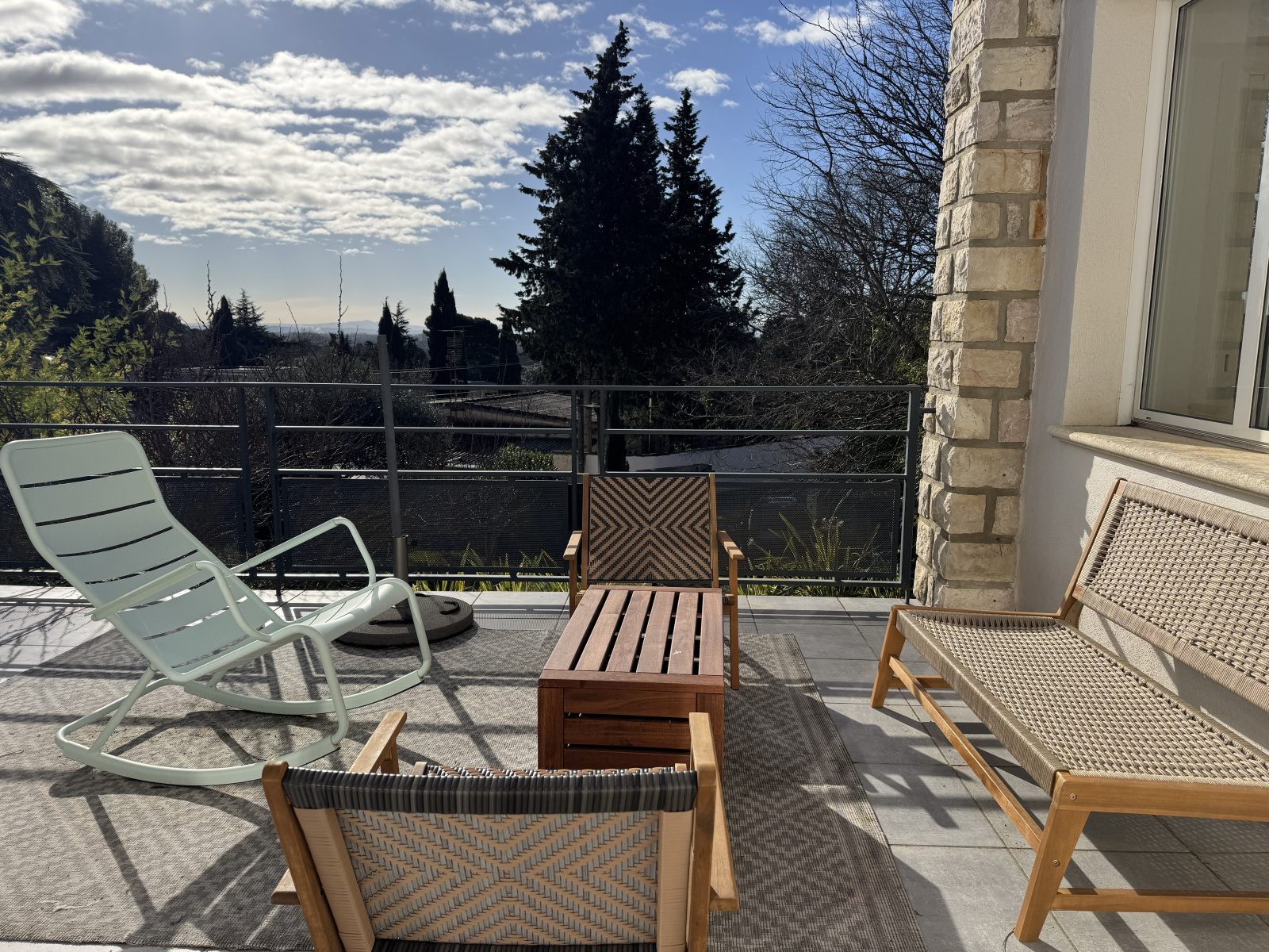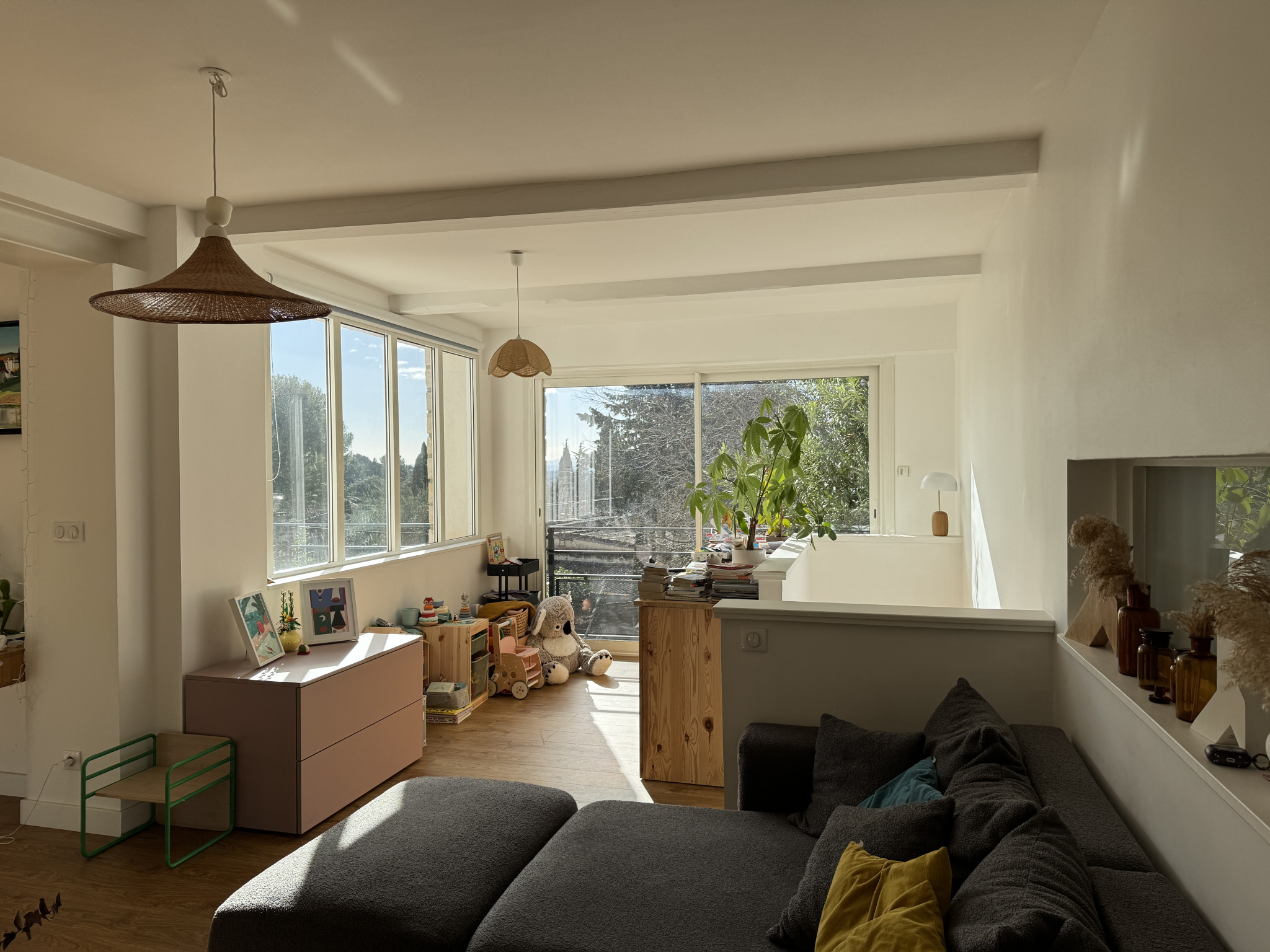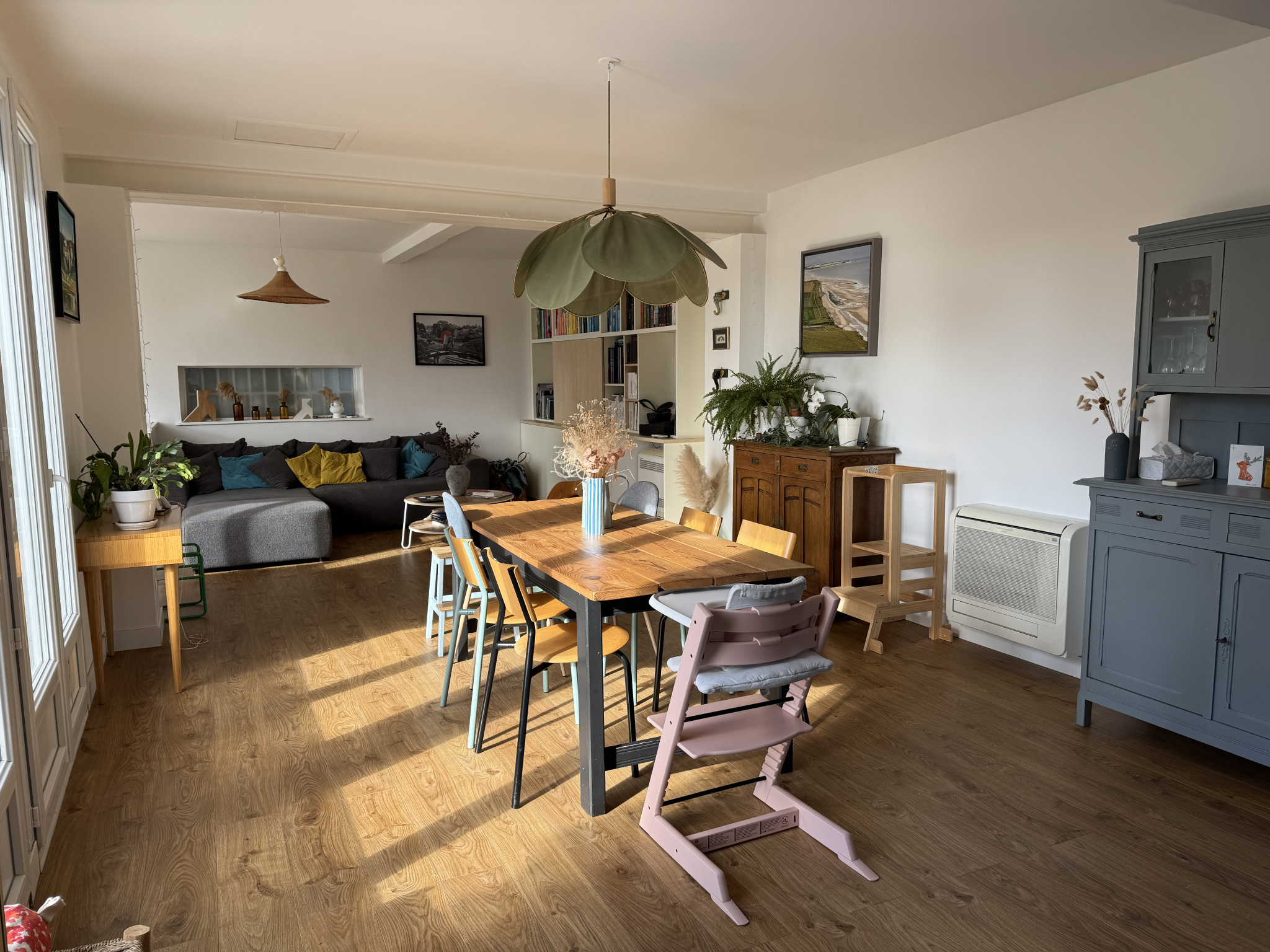 Caroline Jourdan Expertimo vous propose : Dans un secteur recherché et proche de toutes commodités, cette maison des années 50 d'environ 162m2 bénéficie d'un emplacement privilégié et d'un bel ensoleillement tout au long de la journée. L'habitation principale se développe à l'étage, offrant un cadre de vie lumineux et agréable avec une vue dégagée. La pièce de vie d'environ 60 m², chaleureuse et conviviale s'ouvre directement sur une terrasse; une cuisine équipée, deux chambres, une salle de bain, un espace bureau et des toilettes complètent ce niveau permettant une vraie vie de plain-pied à l'étage.