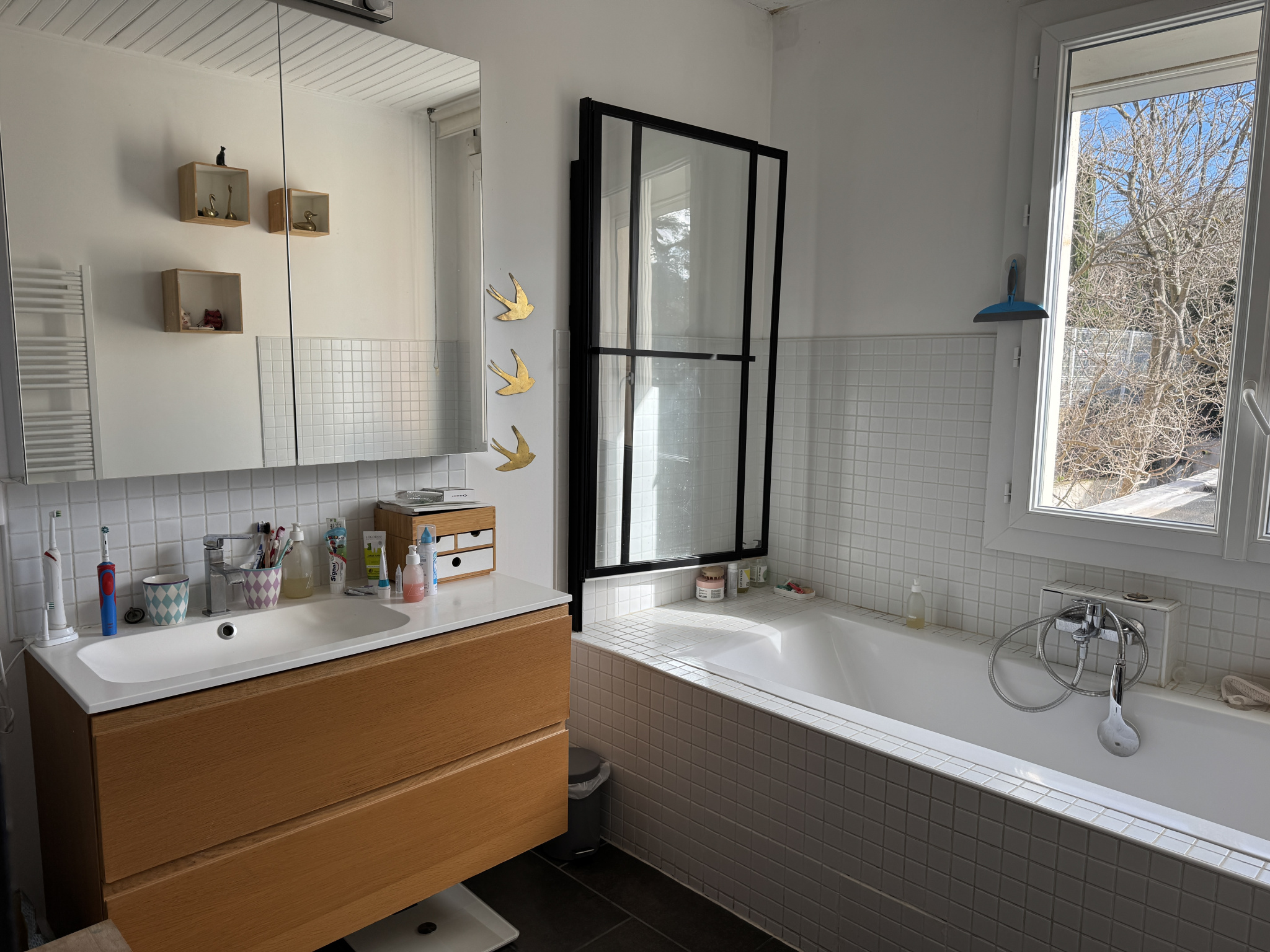 Le rez-de-chaussée aménagé propose une entrée, trois chambres supplémentaires, une salle d'eau, un dressing, et une grande buanderie. La maison a fait l'objet d'une rénovation complète et l'ancien garage a été transformé en studio indépendant de 30m2 apportant un espace supplémentaires appréciable.