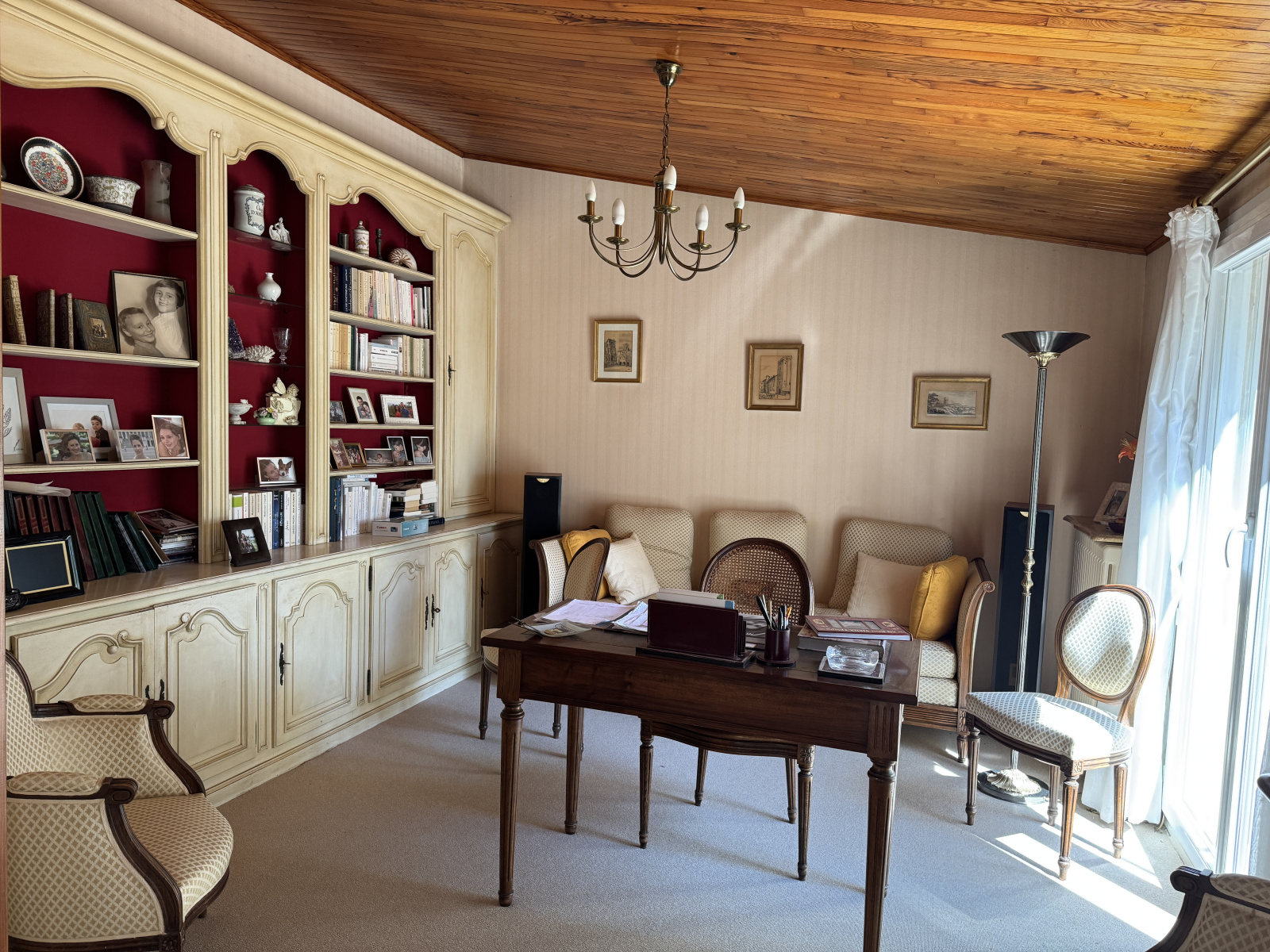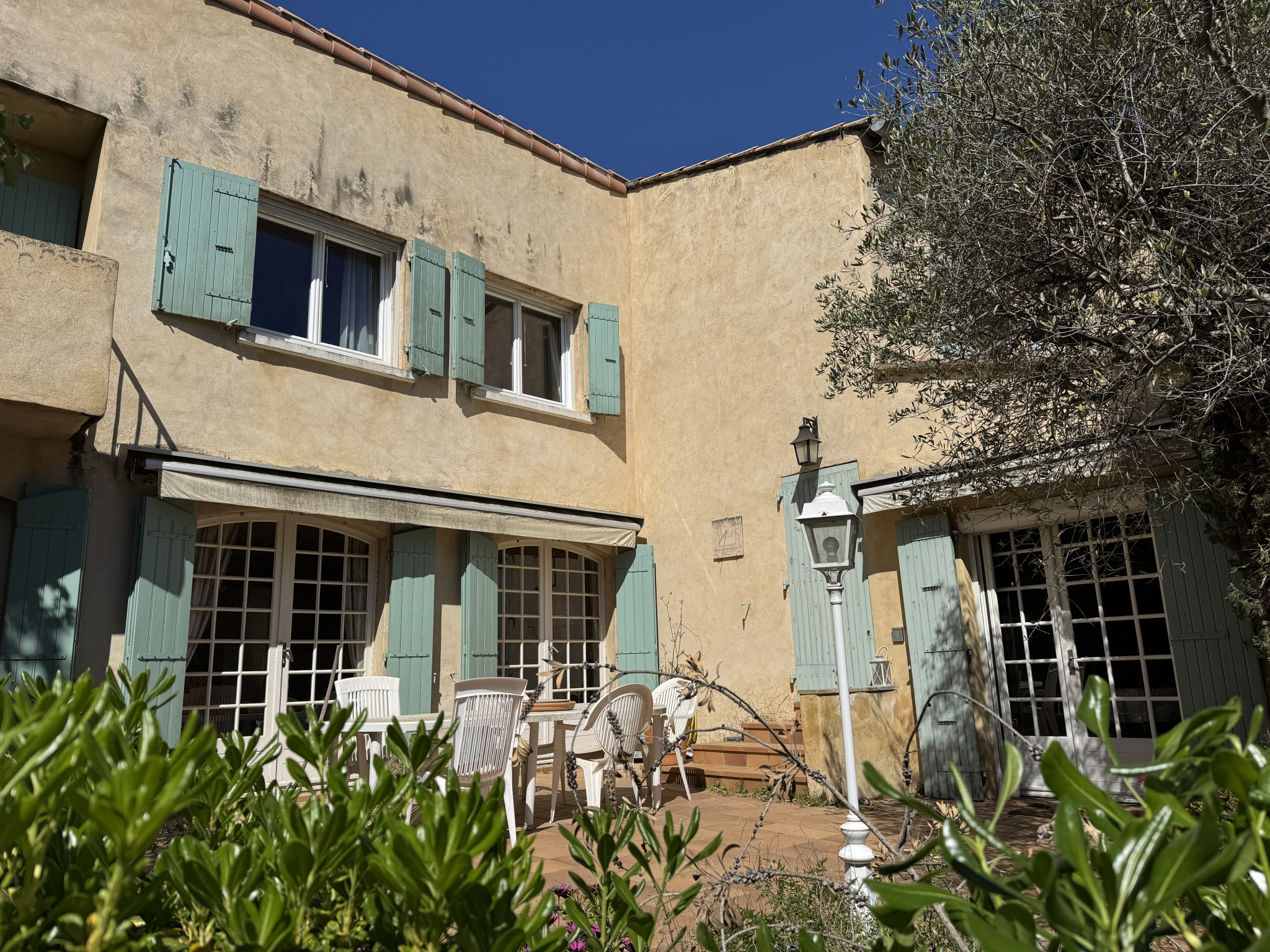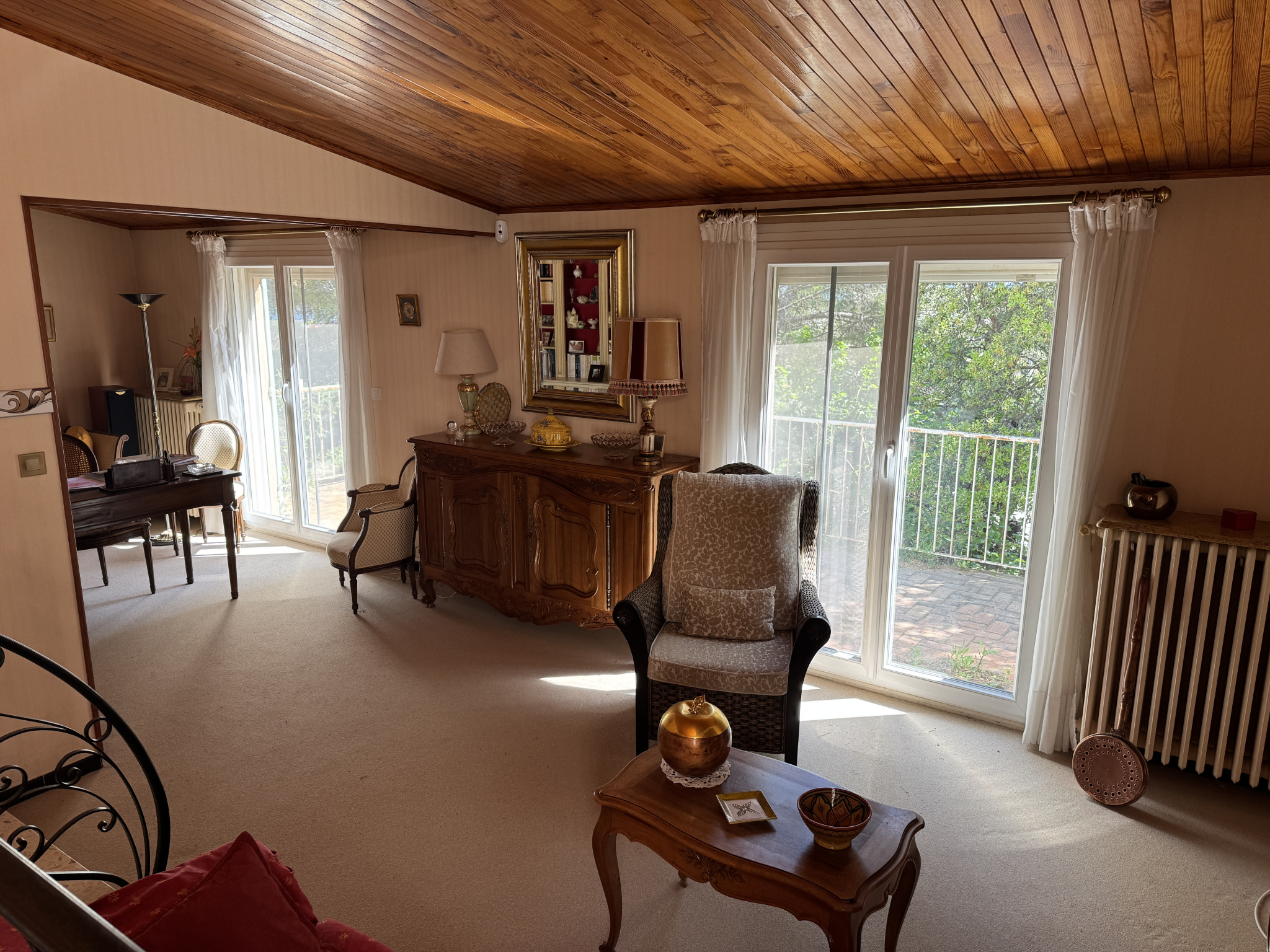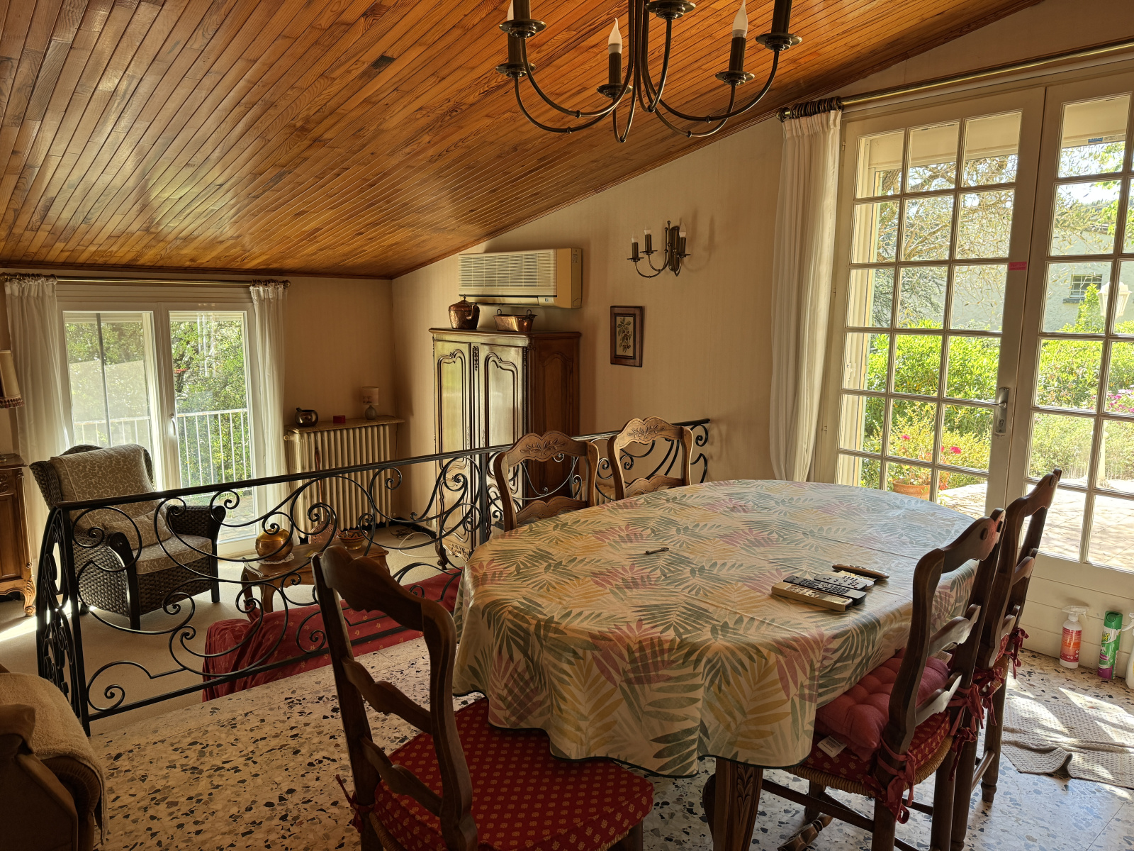 D'une superficie d'environ 177m2 elle offre un grand séjour avec accés à une belle terrasse ensoleillée, une cuisine équipée ouverte sur la salle à manger, 4 chambres à l'étage avec une salle de bain et une salle d'eau ainsi qu'un autre vaste séjour, une chambre et sa salle d'eau au rez-de-chaussée.
