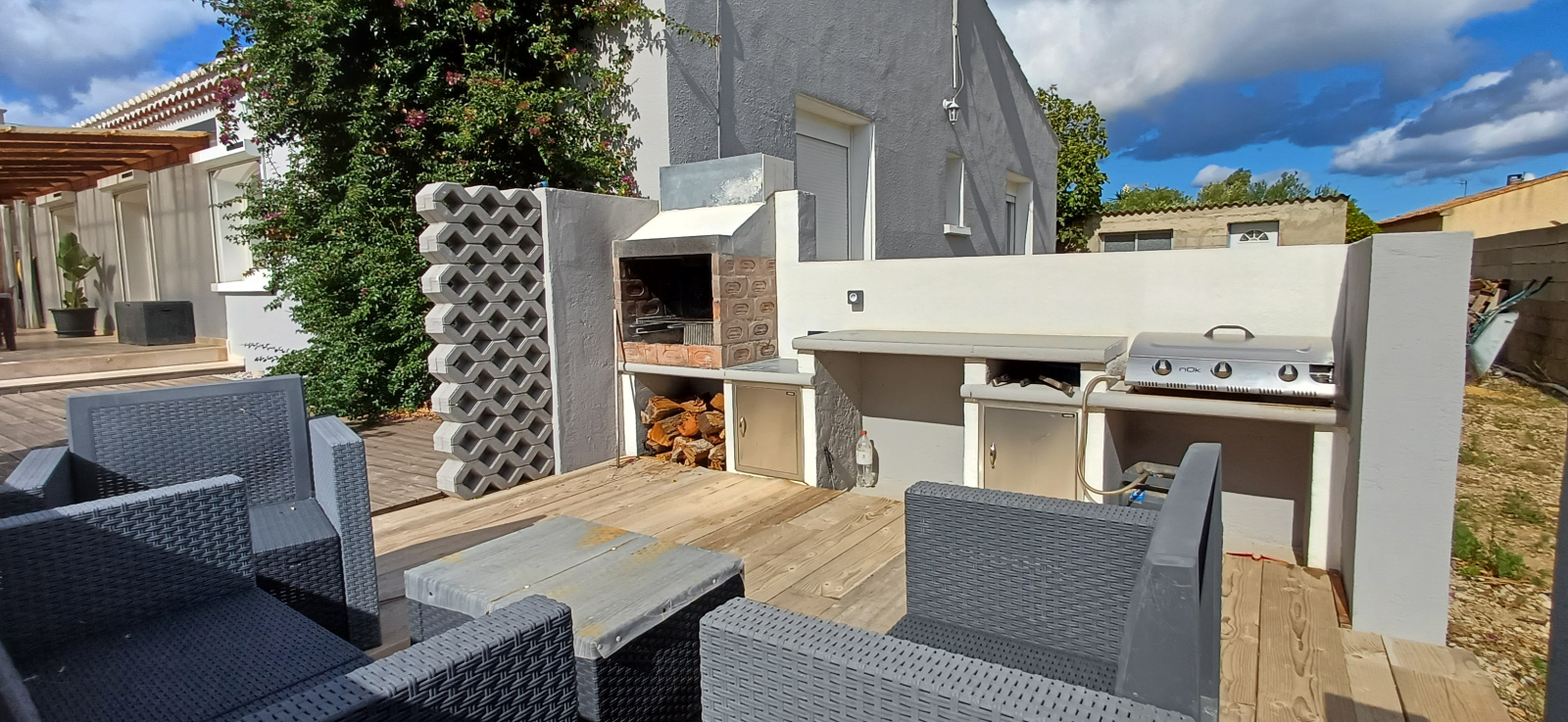 Côtés extérieurs de belles terrasses exposés plein sud, un coin cuisine d'été a mettre a son goût.