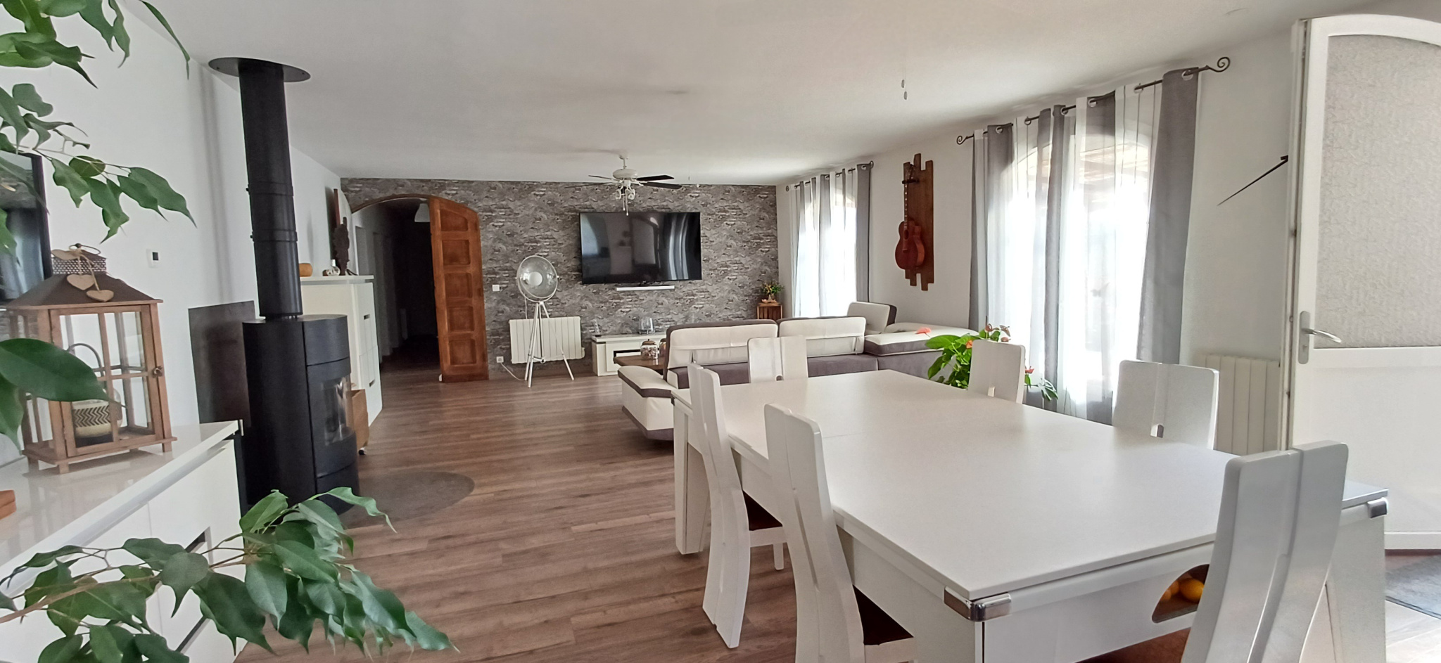 A voir rapidement cette grande maison très lumineuse de 165m2 entièrement rénovée avec goût sur un terrain de 1420m2 sans vis à vis.