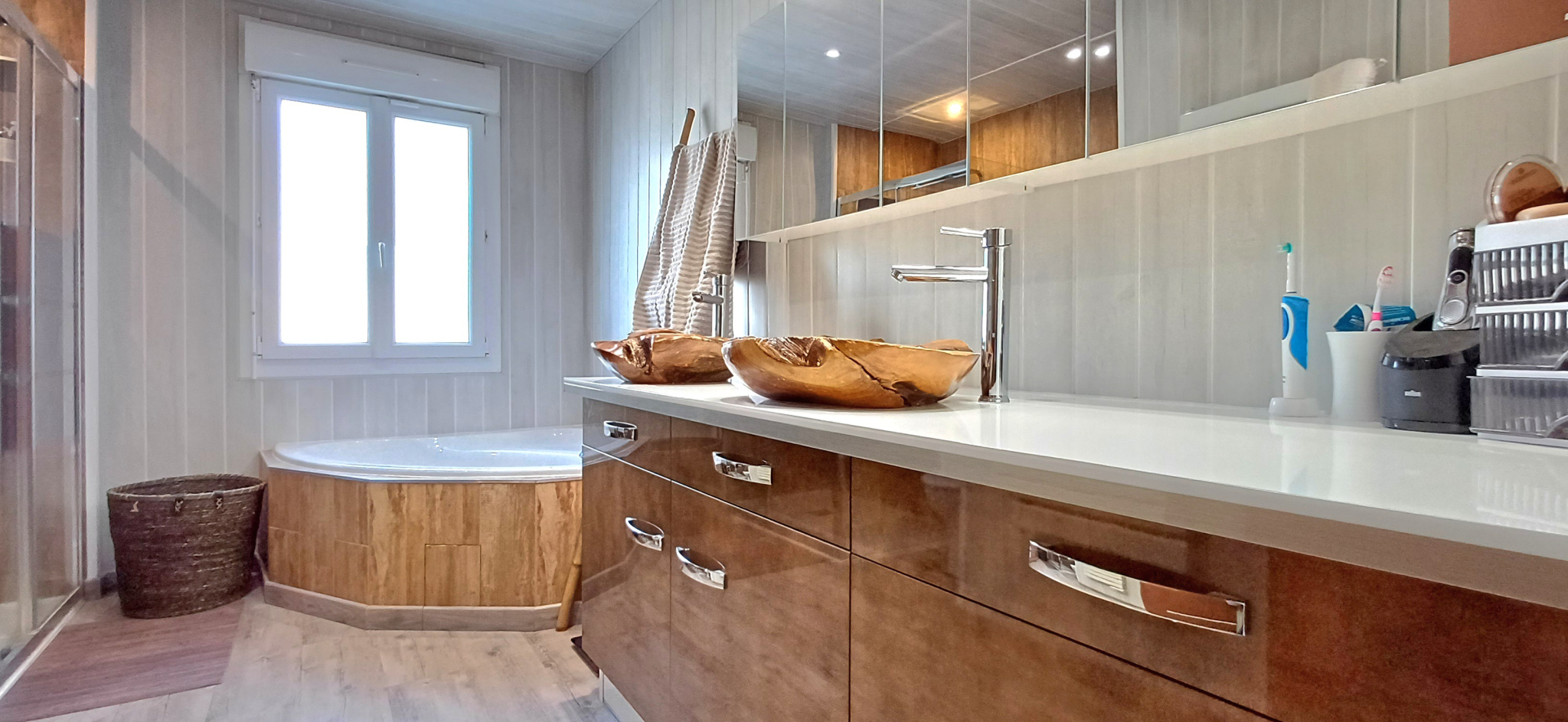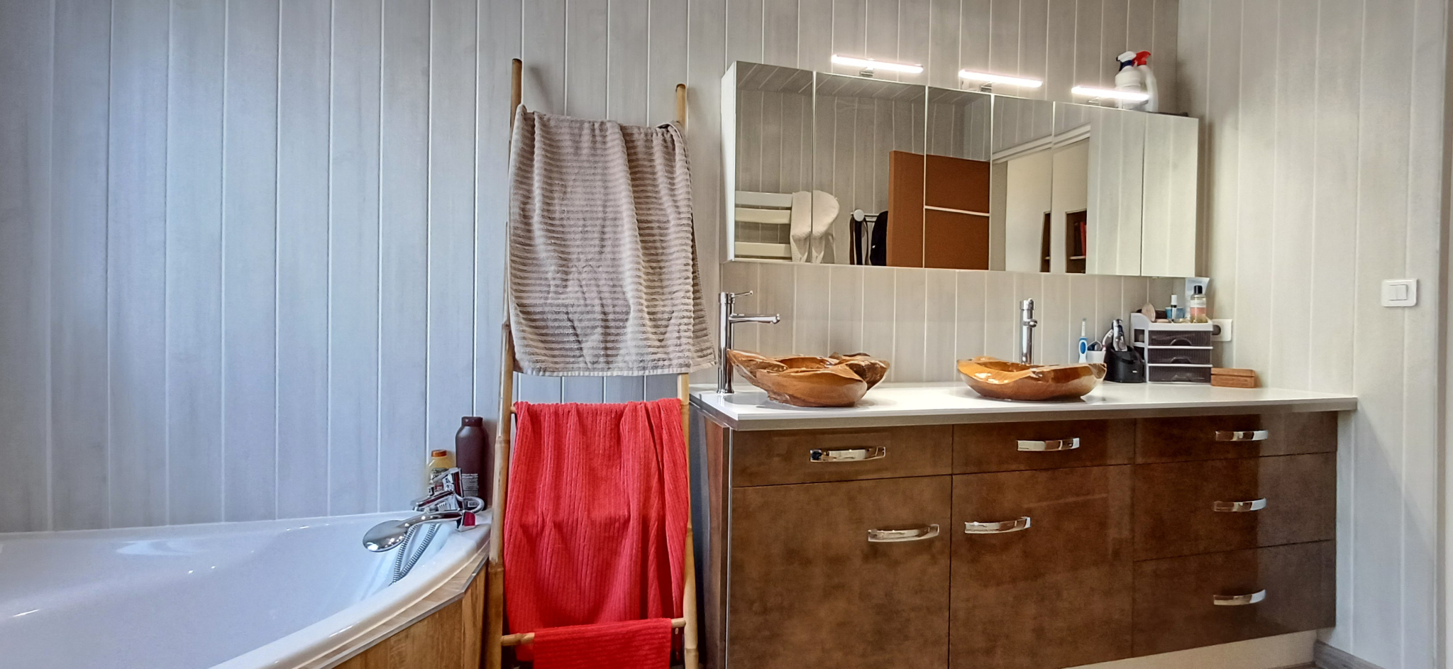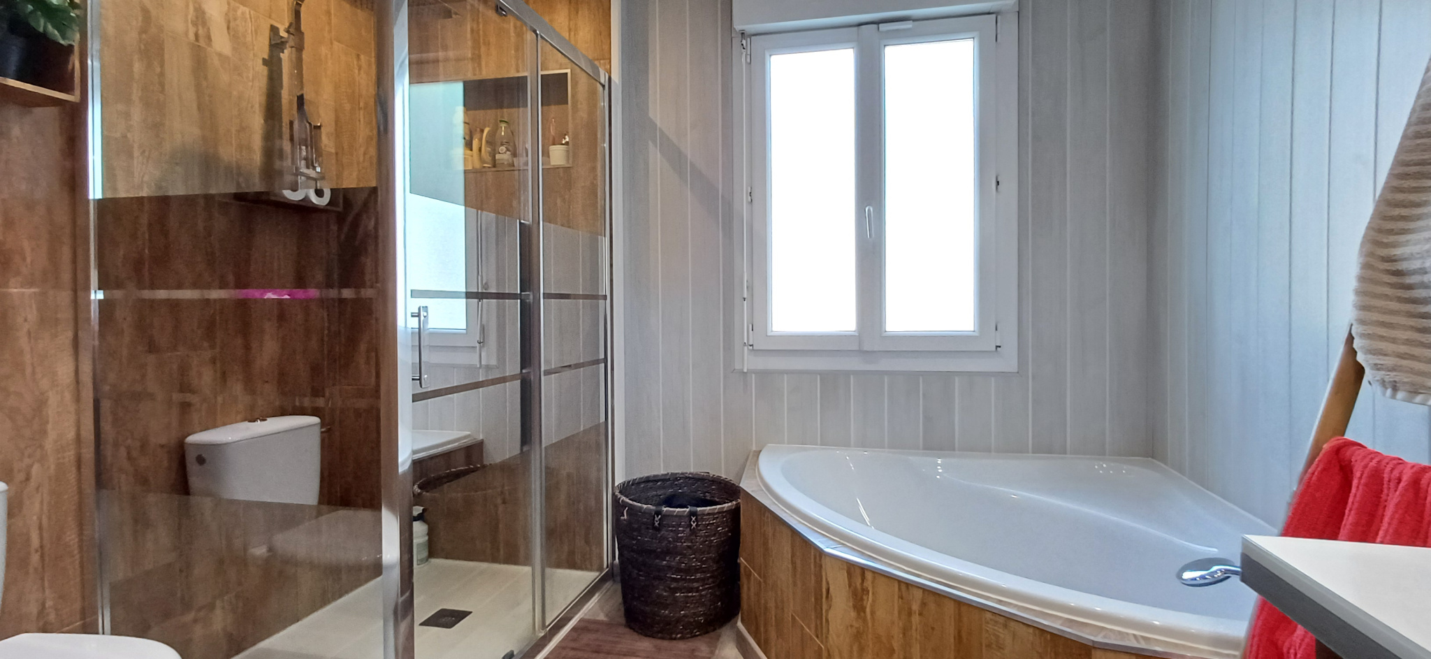 Côté nuit, on y trouve 4 grandes chambres de 16m2 avec rangements, une grande salle de bain avec douche et baignoire, des toilettes séparés et un cellier.