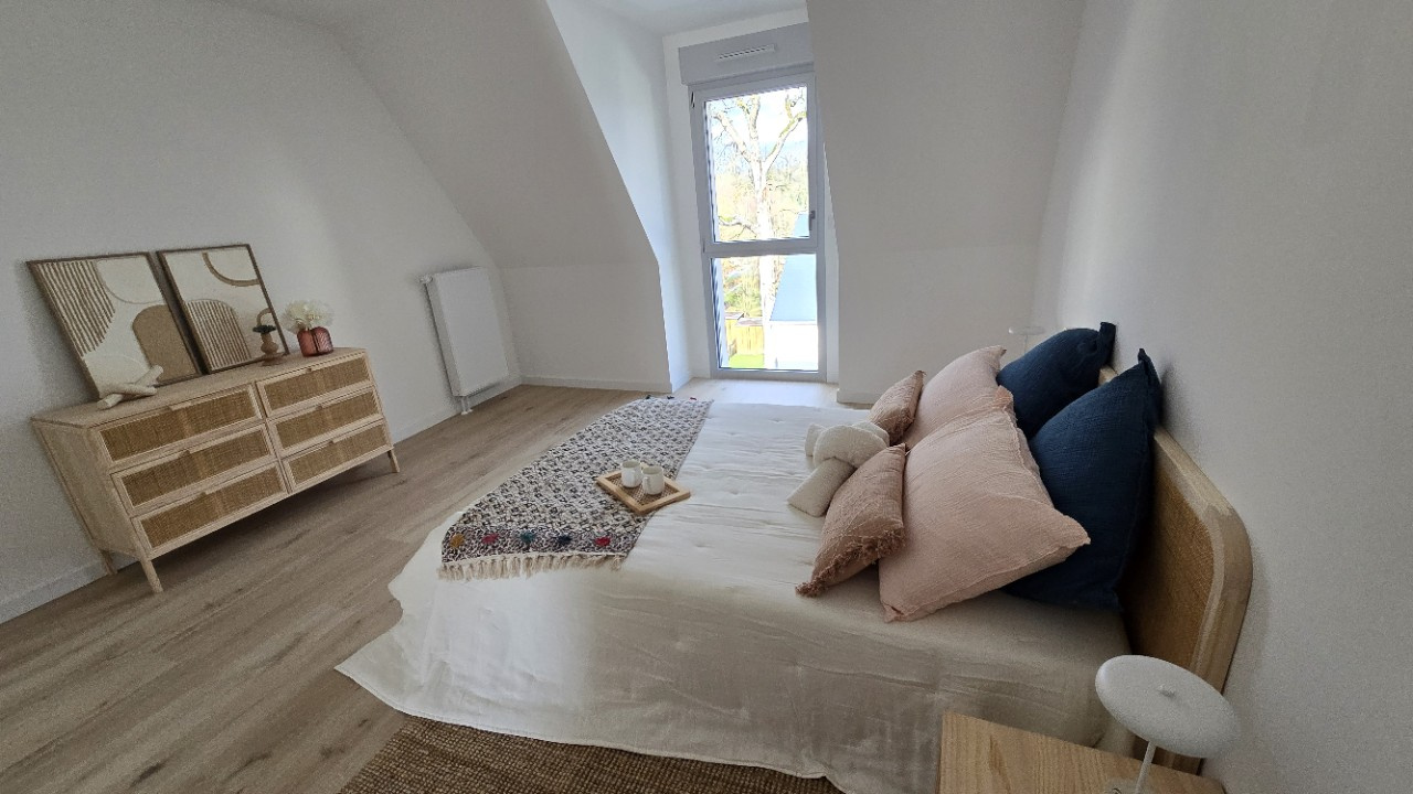 Côté nuit, 2 belles et grandes chambres, dont une suite parentale avec sa salle d'eau privative avec toilettes. Une autre salle d'eau, avec douche dit"àl'italienne" moderne et équipée d'une double vasque, ainsi qu’un WC séparé.