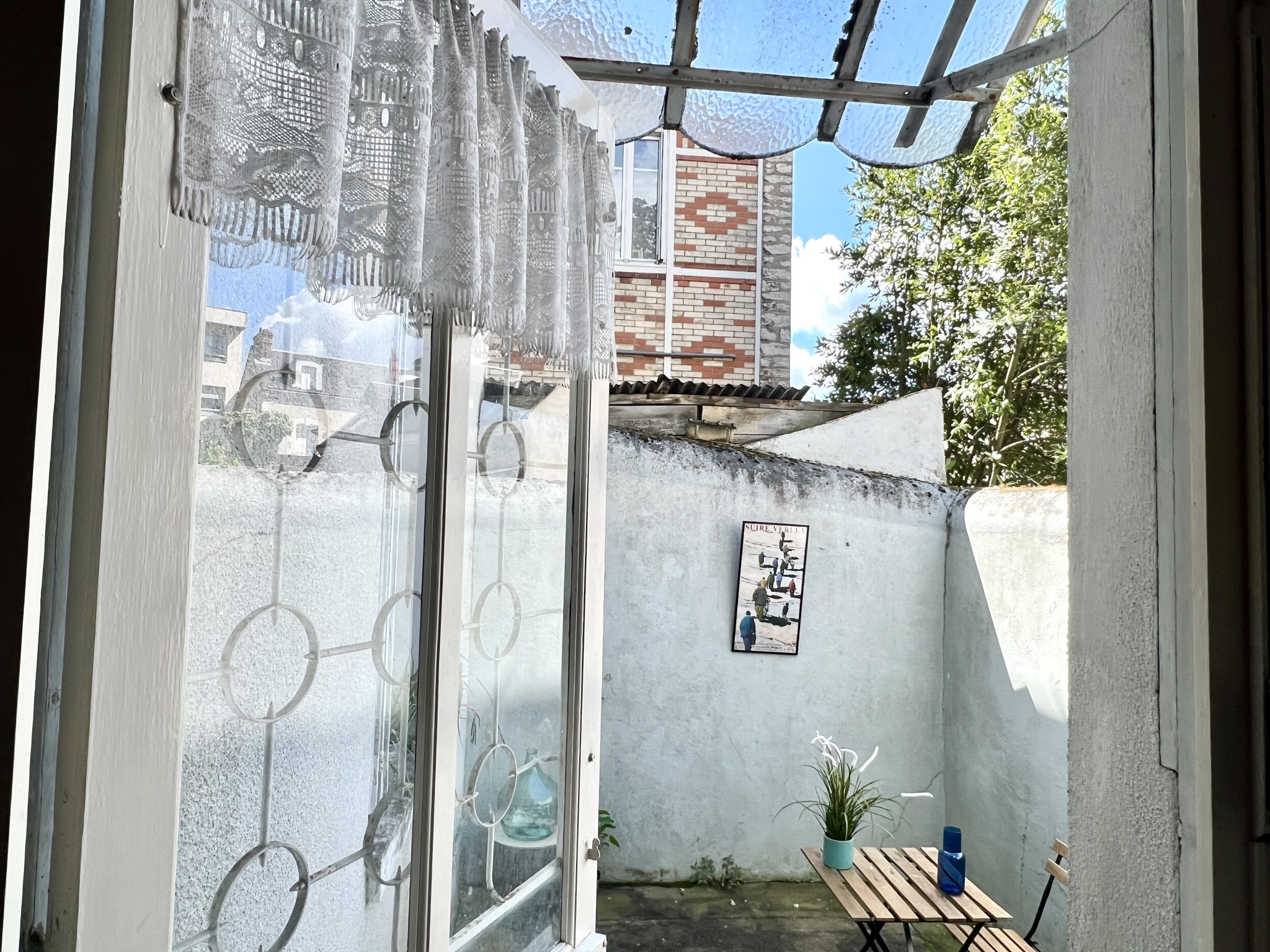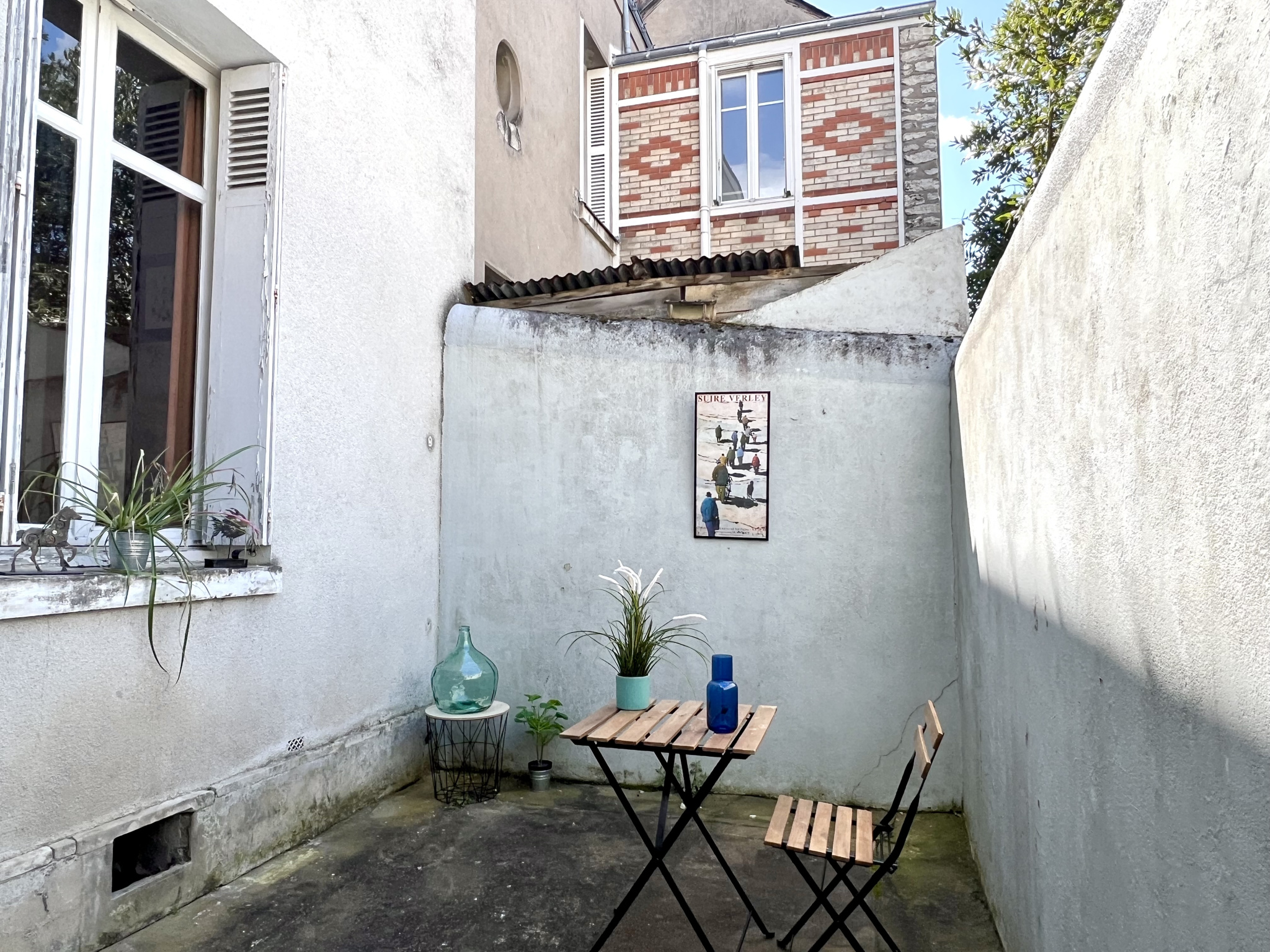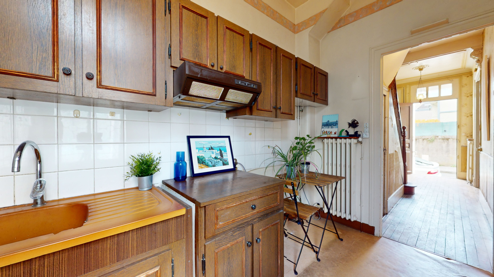 Au rez-de-chaussée un séjour double avec lumière traversante, bel ensoleillement, une cuisine avec accès sur la cour intimiste, close de murs.