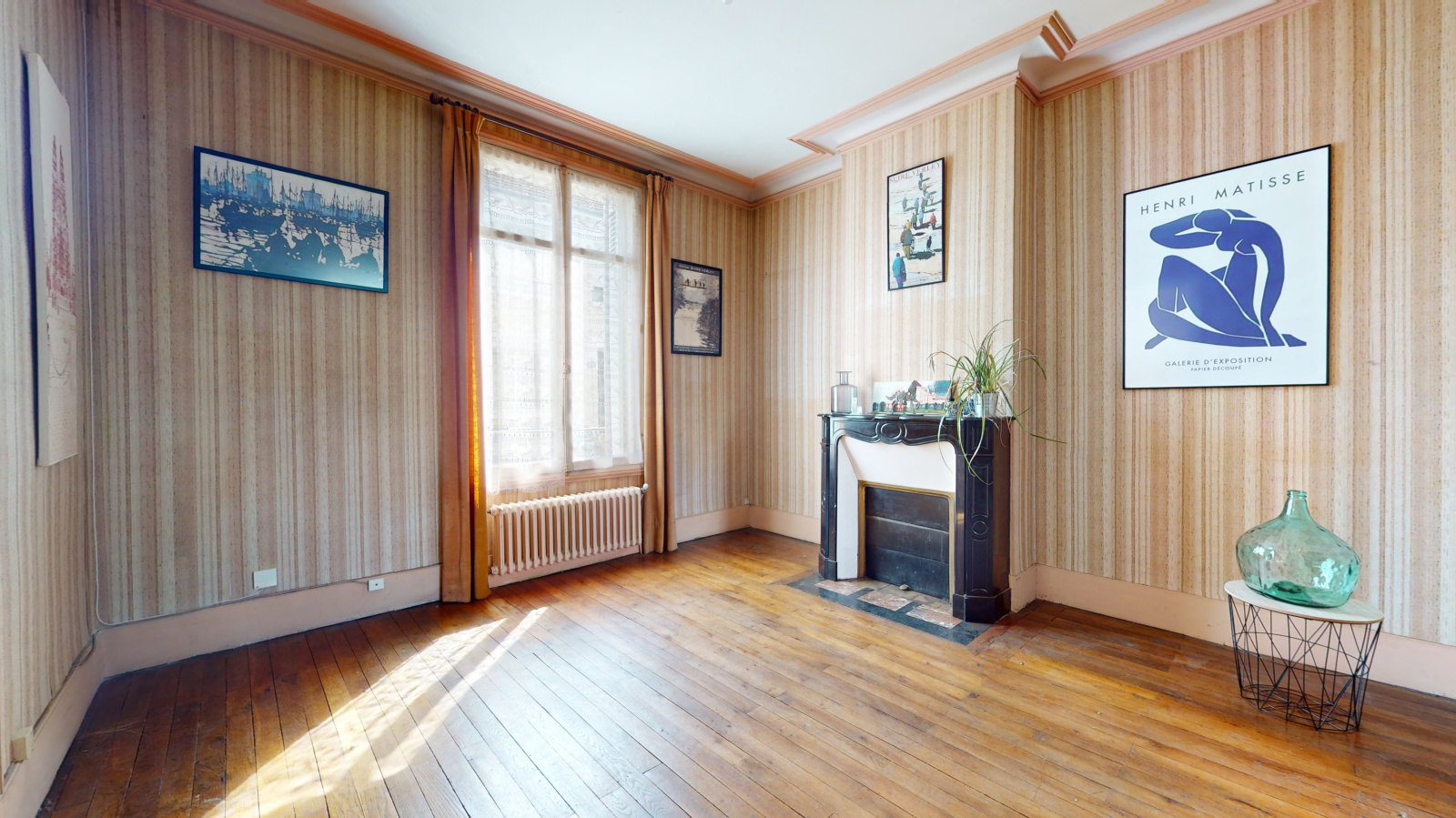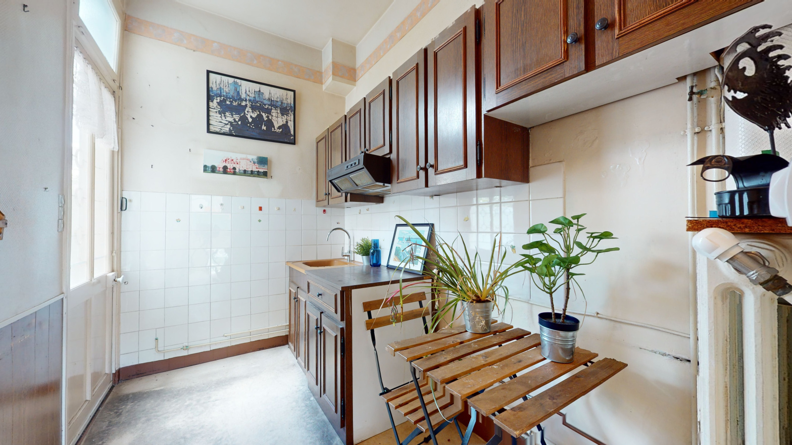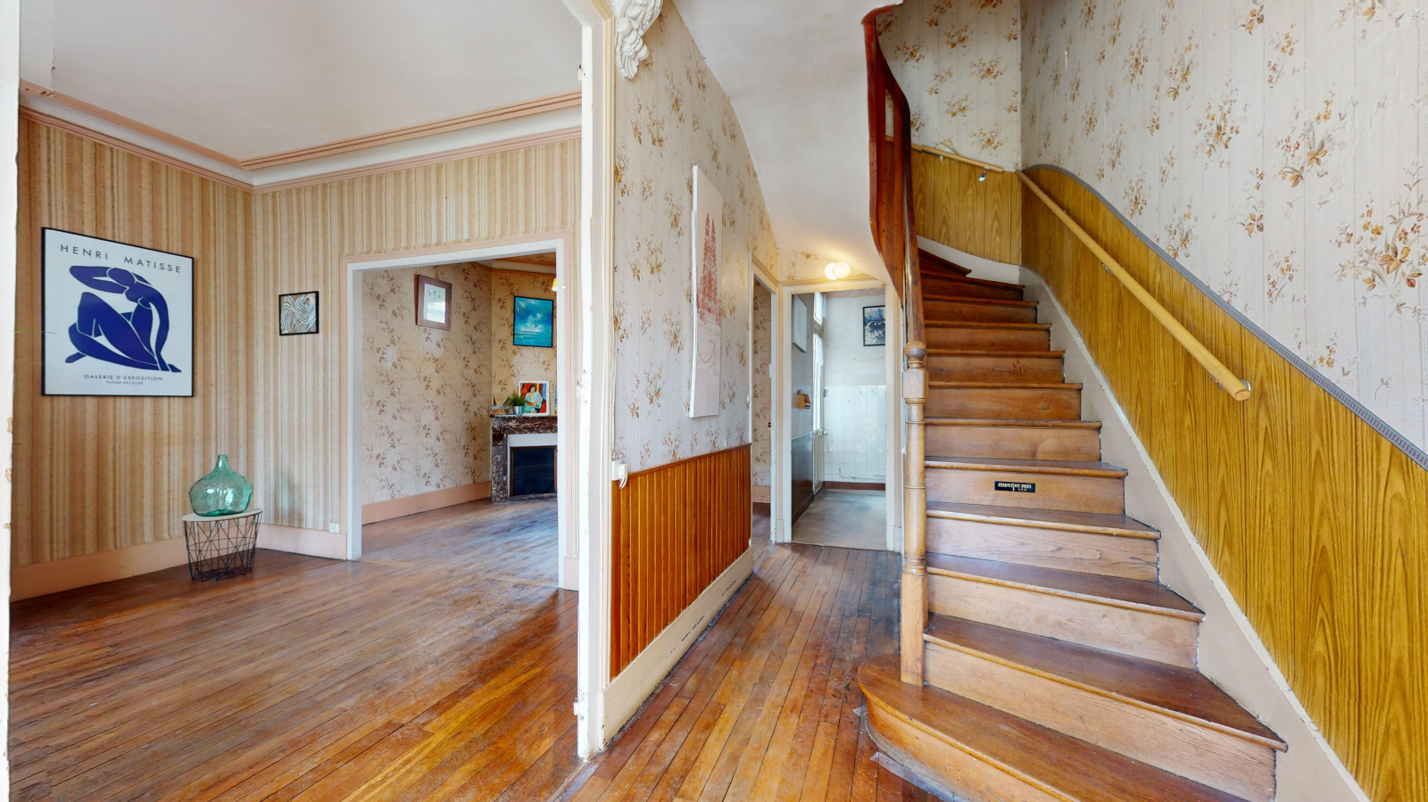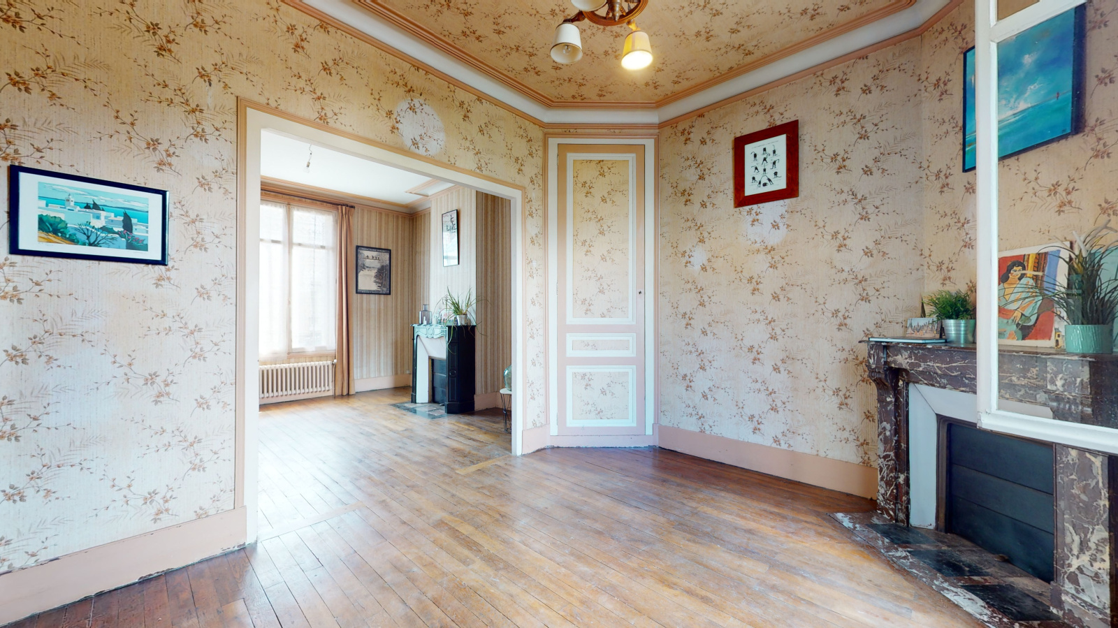Au rez-de-chaussée un séjour double avec lumière traversante, bel ensoleillement, une cuisine avec accès sur la cour intimiste, close de murs.
