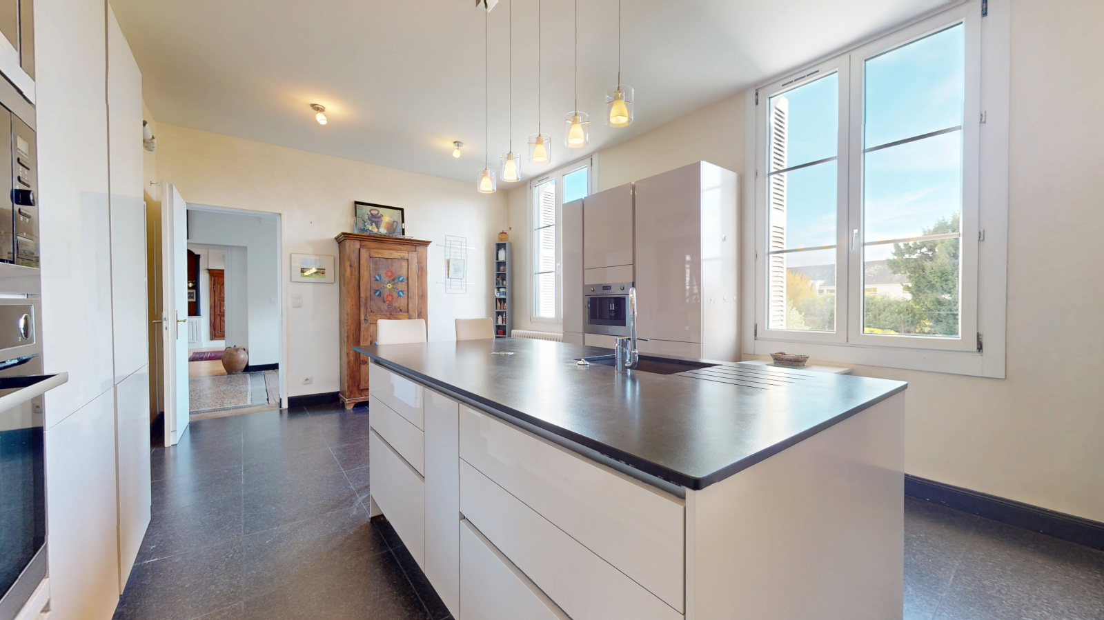 Au niveau inférieur, une véranda et une cuisine d'été pour profiter des beaux jours en toute convivialité.