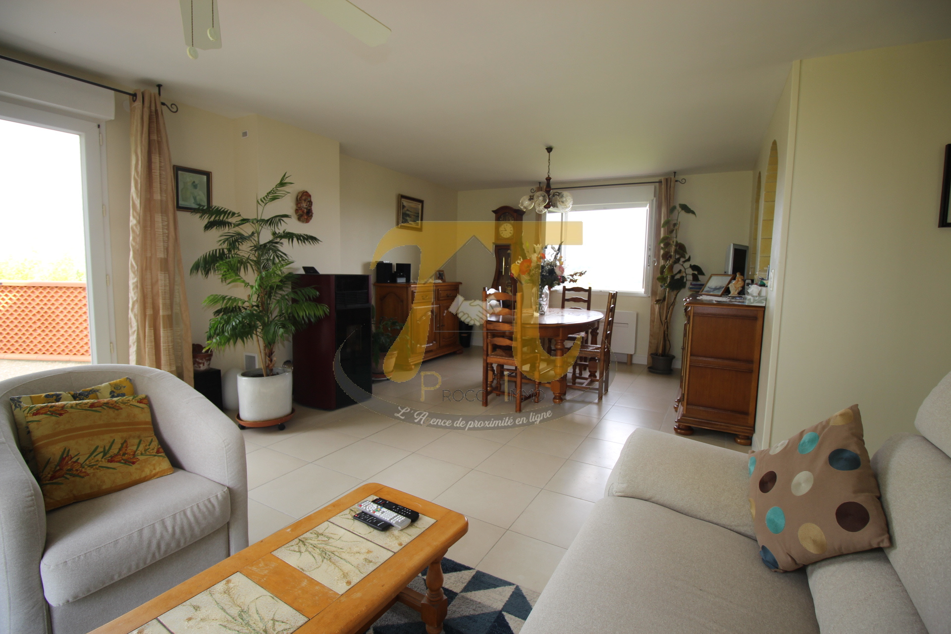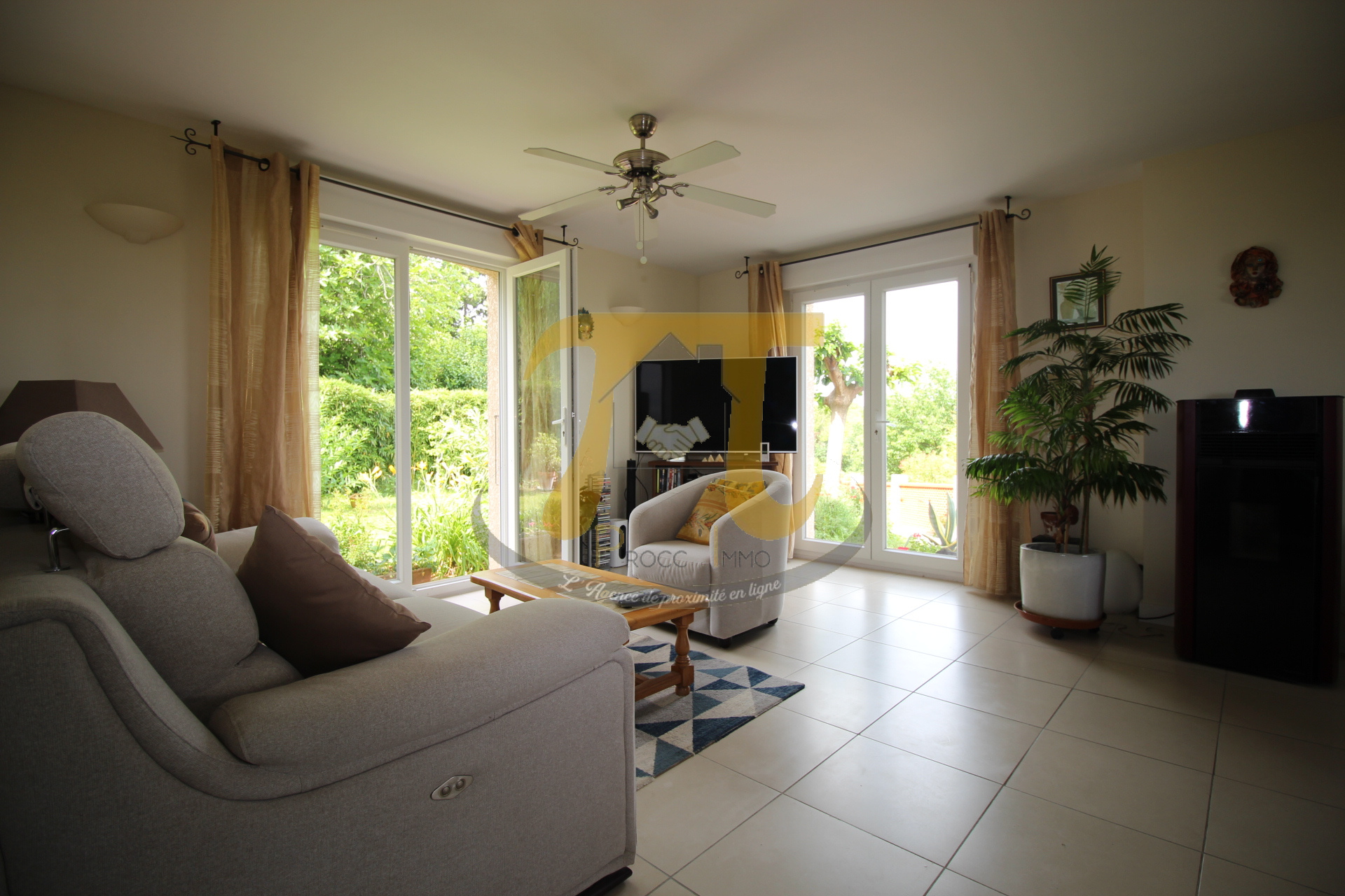 Elle se compose d’un salon/séjour lumineux de 38 m² avec poêle à pellets et échangeur climatisant, ouvert sur une cuisine équipée semi-ouverte de 11,4 m², alliant confort et convivialité et de plain-pied, 2 chambres, une salle de bains rénovée avec douche et wc séparé.