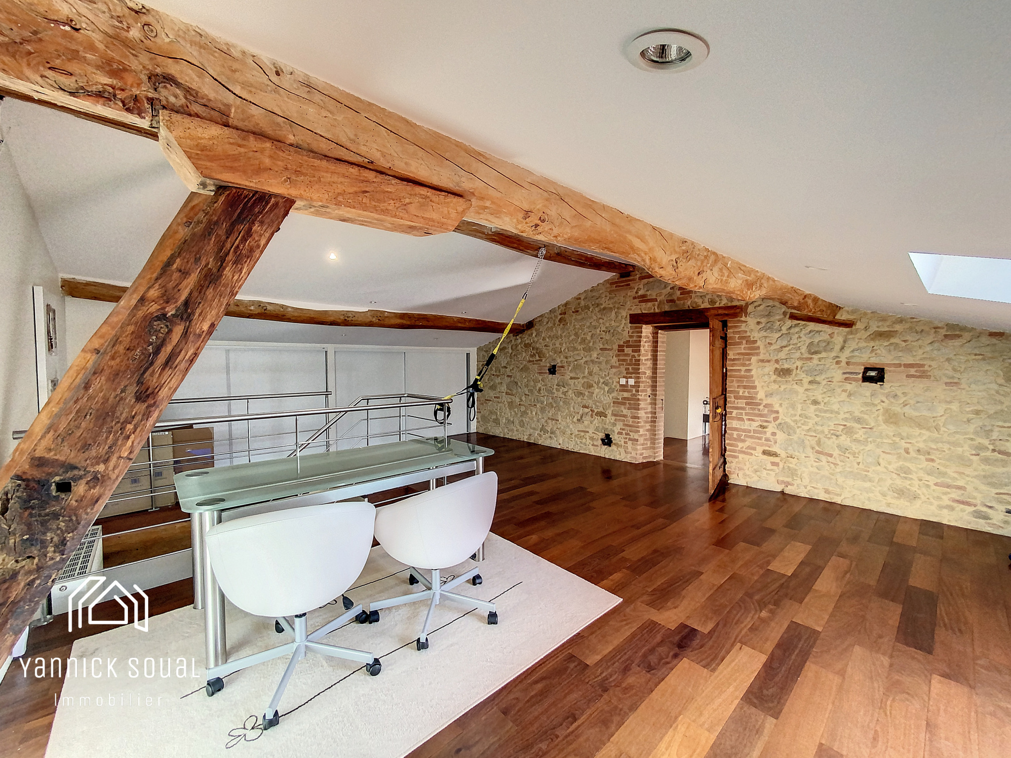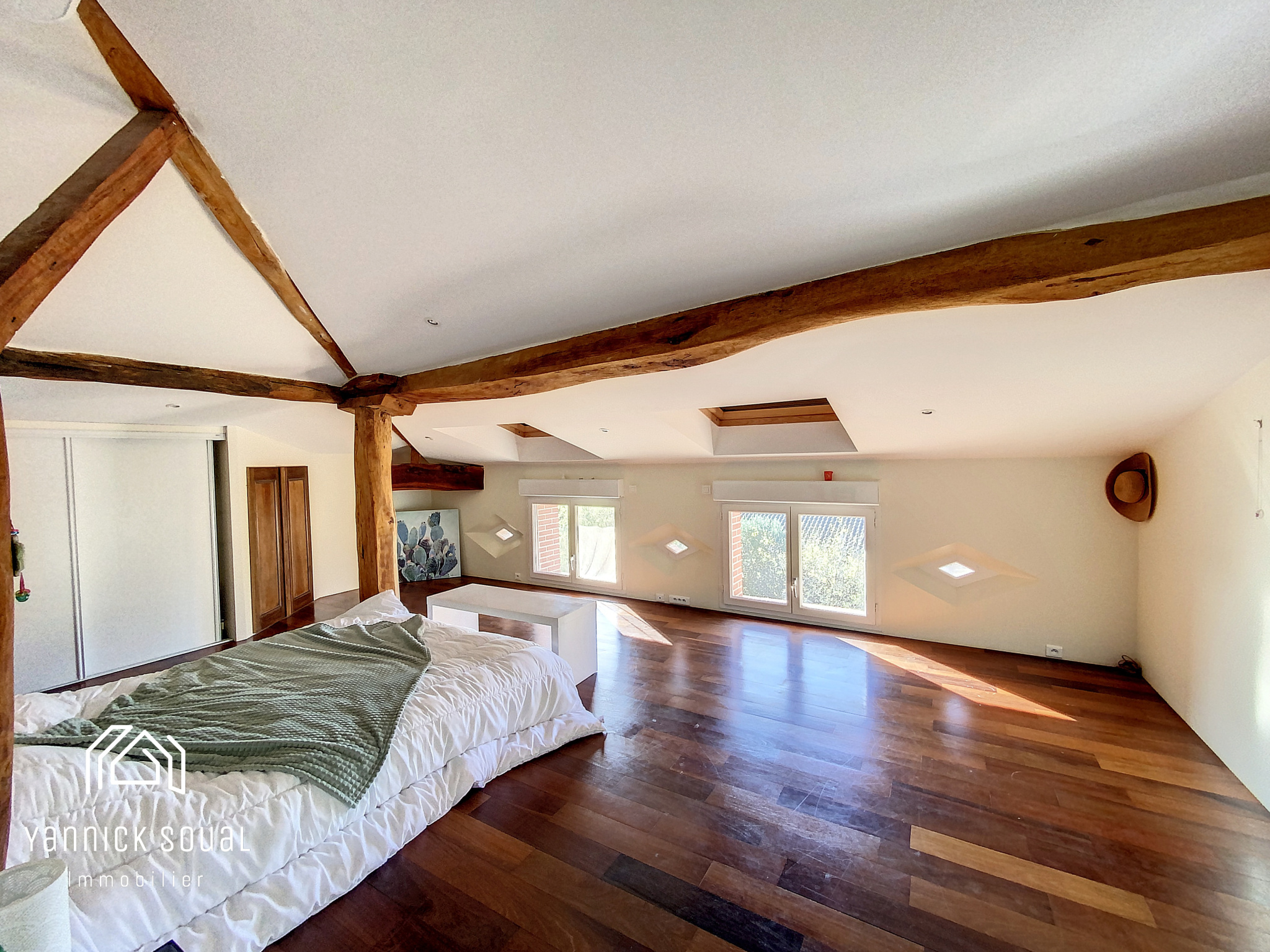 Niveau étage : nous découvrons 60m² d'espace, bureau ou bien pièce de loisir qui offre de nombreux rangements suivi d'une suite parentale de plus de 40m² avec dressing, salle d'eau, WC séparé.