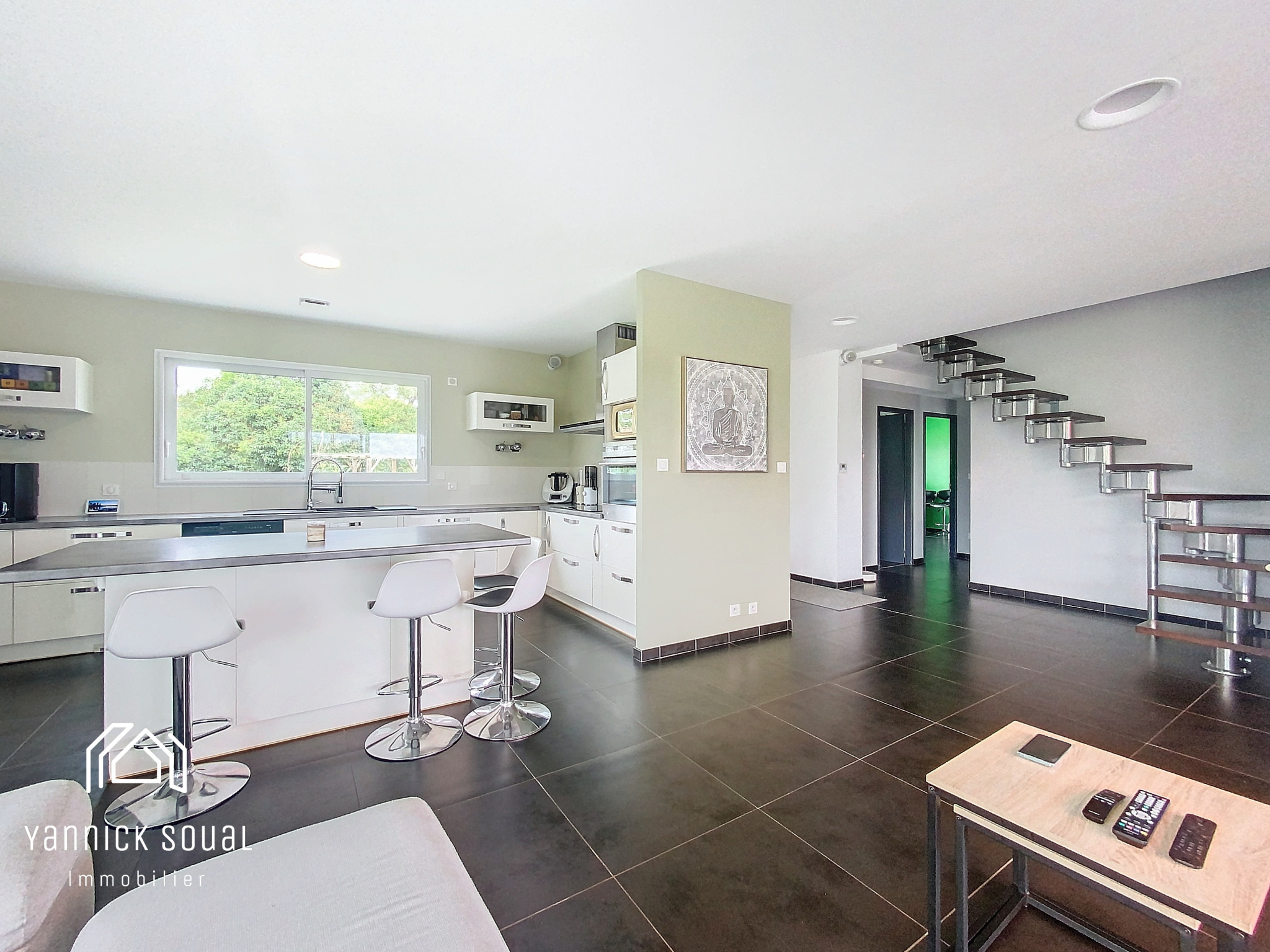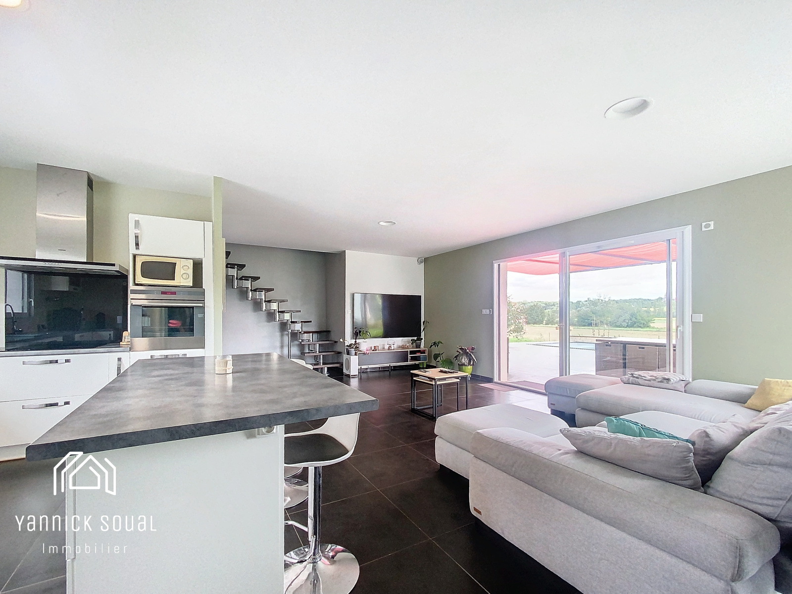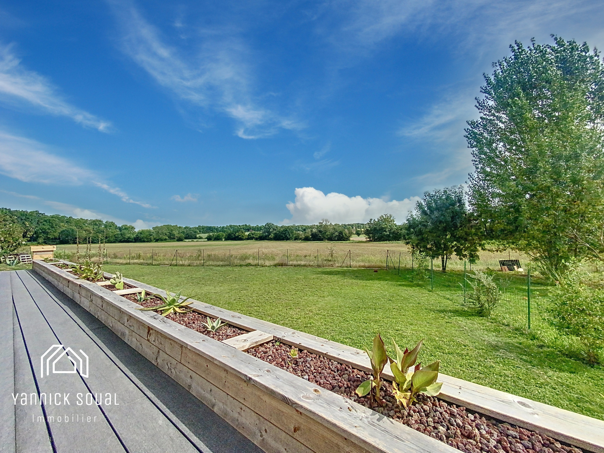Côté "pièce extérieure", accessible depuis le séjour, une terrrasse "cosy" parfaitement orientée et à l'abri des regards vous dirige vers la piscine 9x3 sécurisée. Cet espace laisse supposer une vie "dedans/dehors" où se mêle zenitude et plénitude.