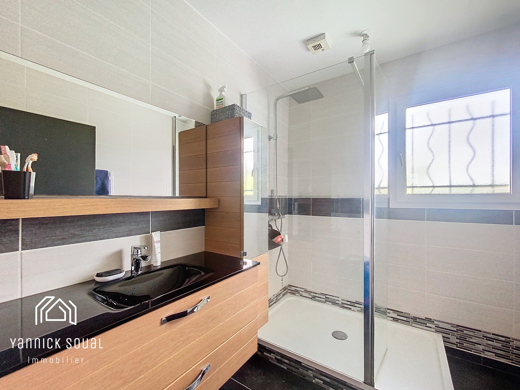 La découverte continue avec à l'étage, 2 chambres supplémentaires (13,60m² et 13,30m²), une salle d'eau indépendante ainsi qu'un WC séparé. Climatisation réversible dans chaque chambre.