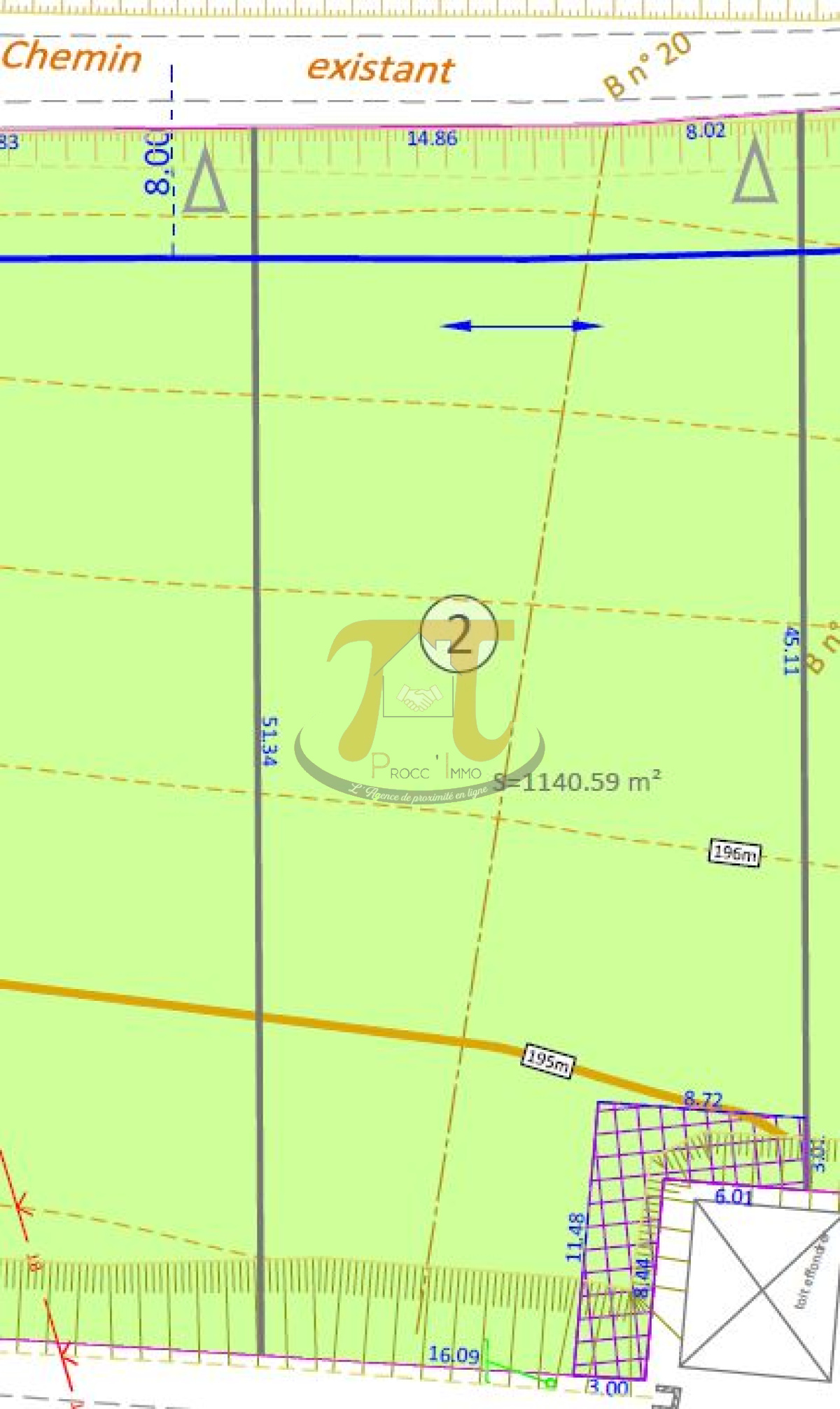 pente légère SUD-OUEST.(une photo est un projet de constructeur)