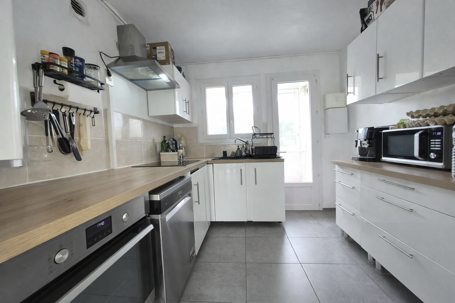 La cuisine moderne, entièrement équipée, se prolonge avec une loggia fonctionnelle.