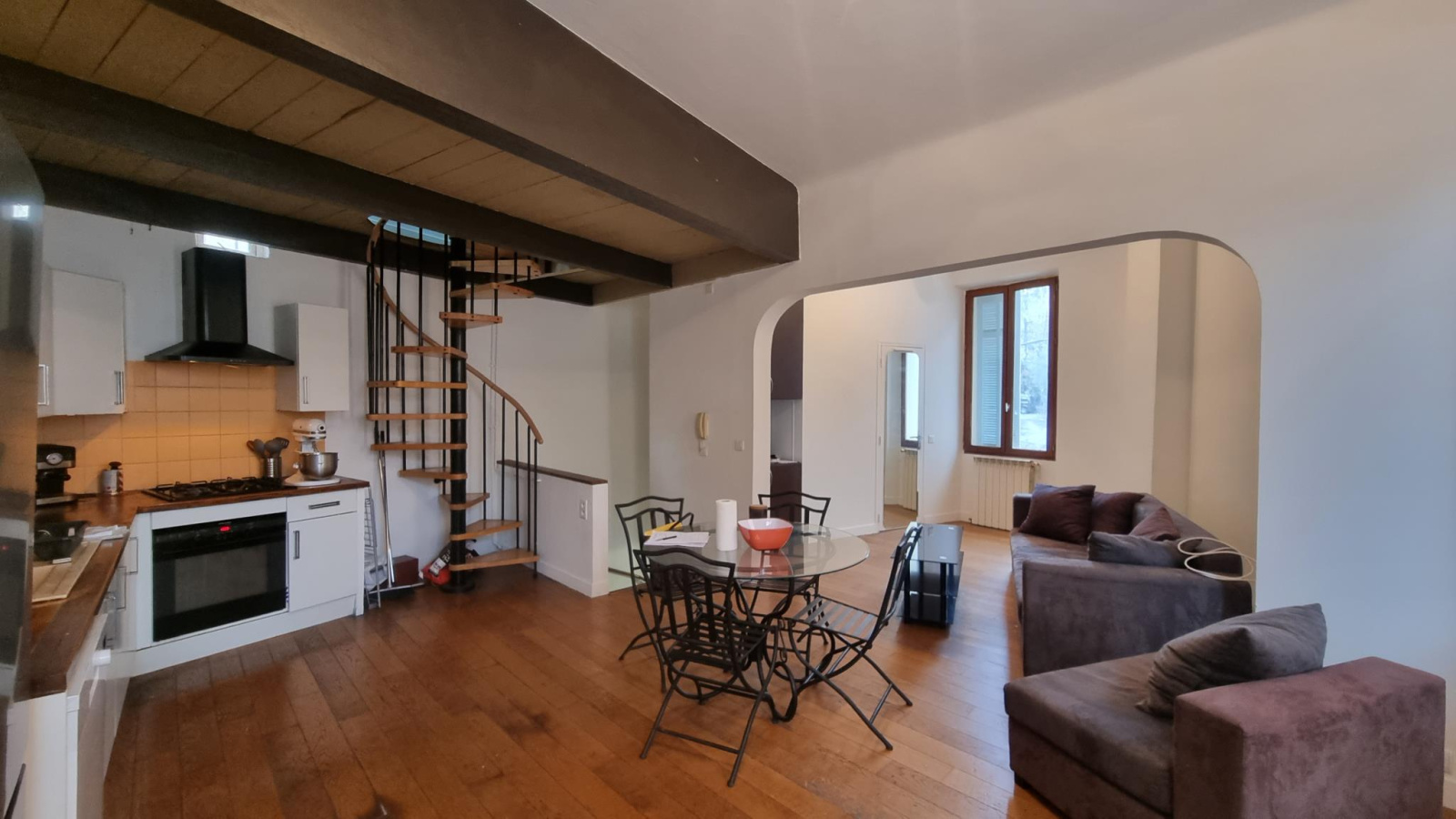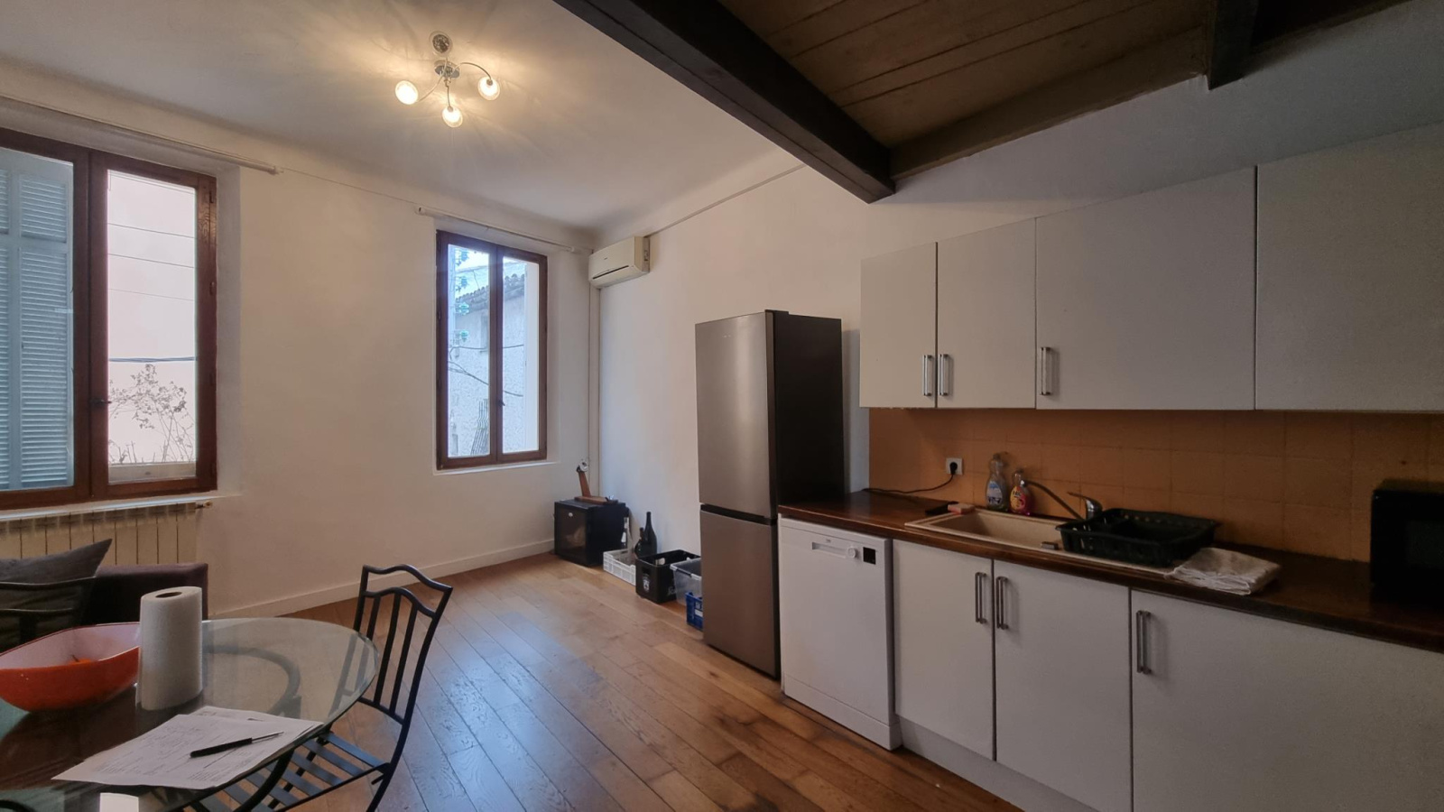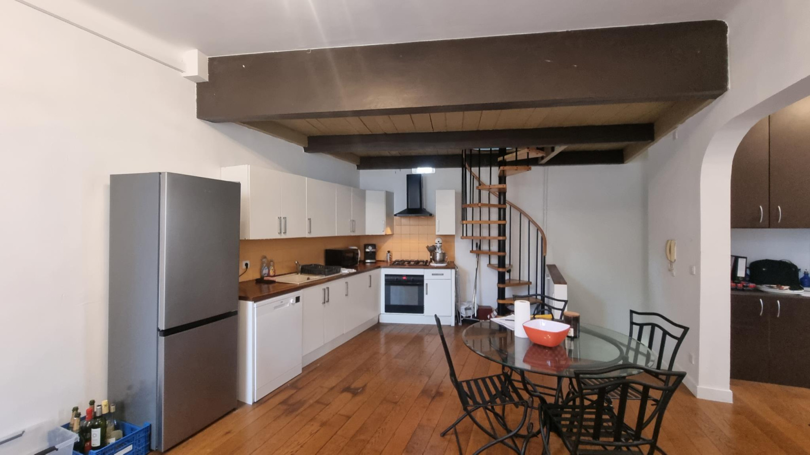 Au 1er étage : une cuisine ouverte sur une grande pièce de vie, une salle d'eau.