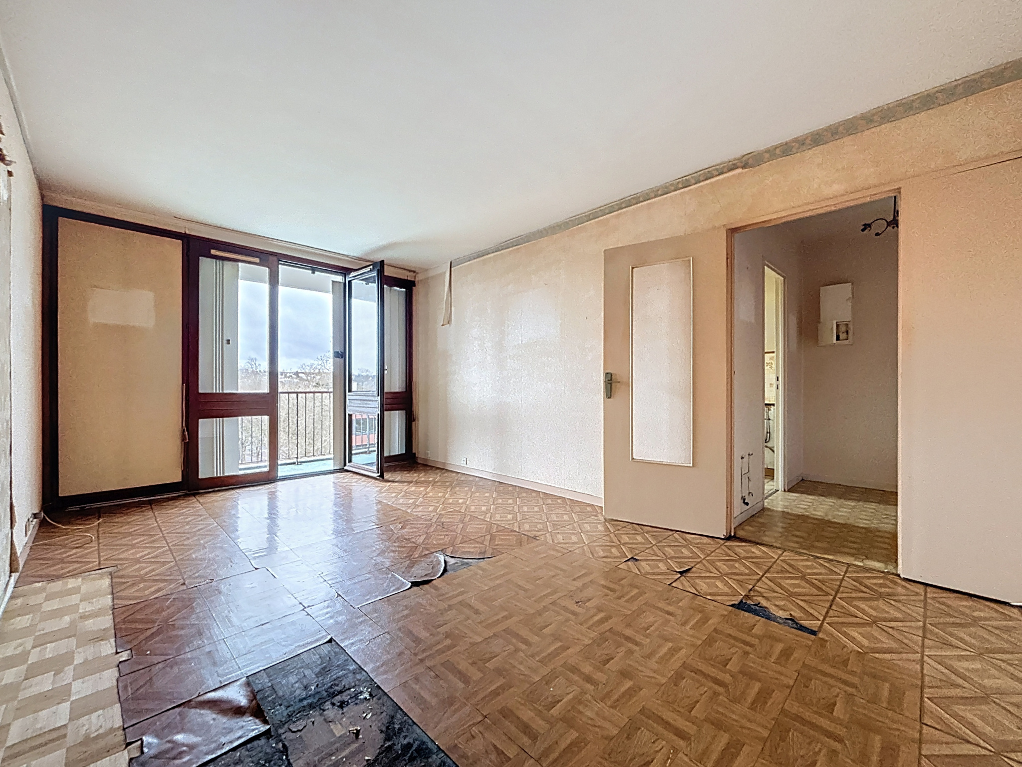 Appartement nécessitant des travaux de rénovation avant de pouvoir profiter pleinement des espaces.