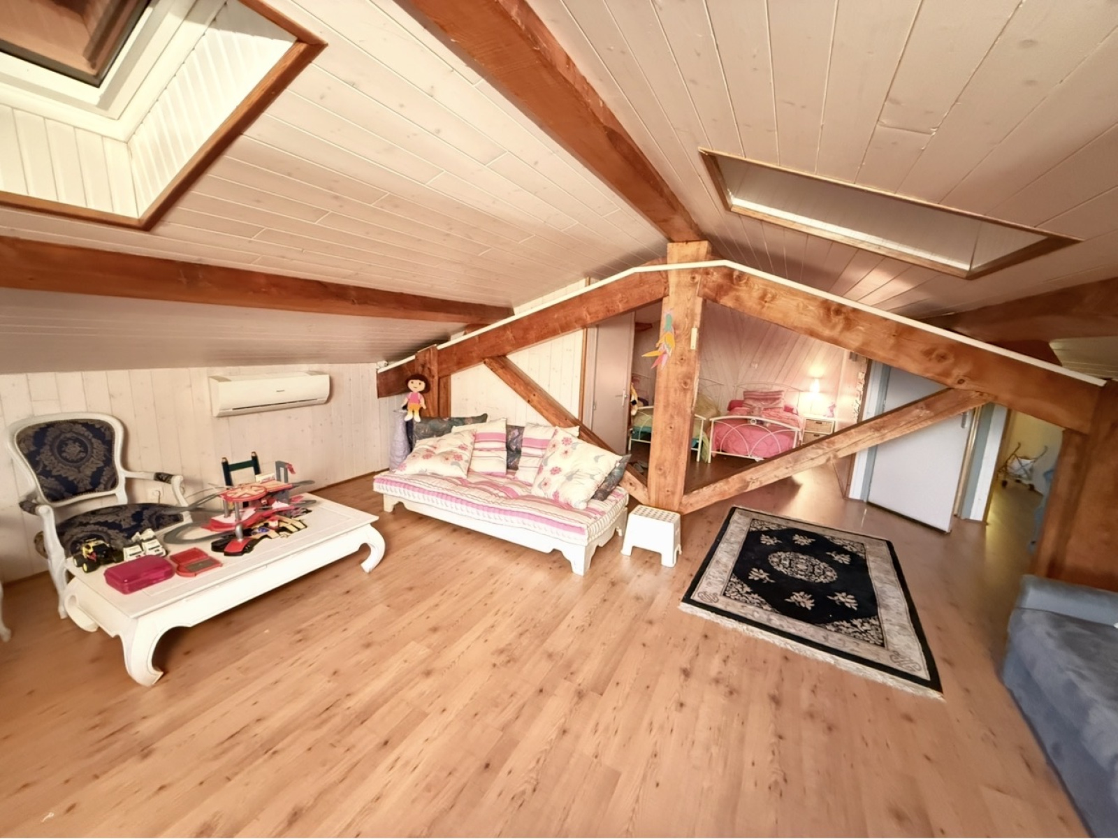 en mansarde, accès wc avec lave-mains