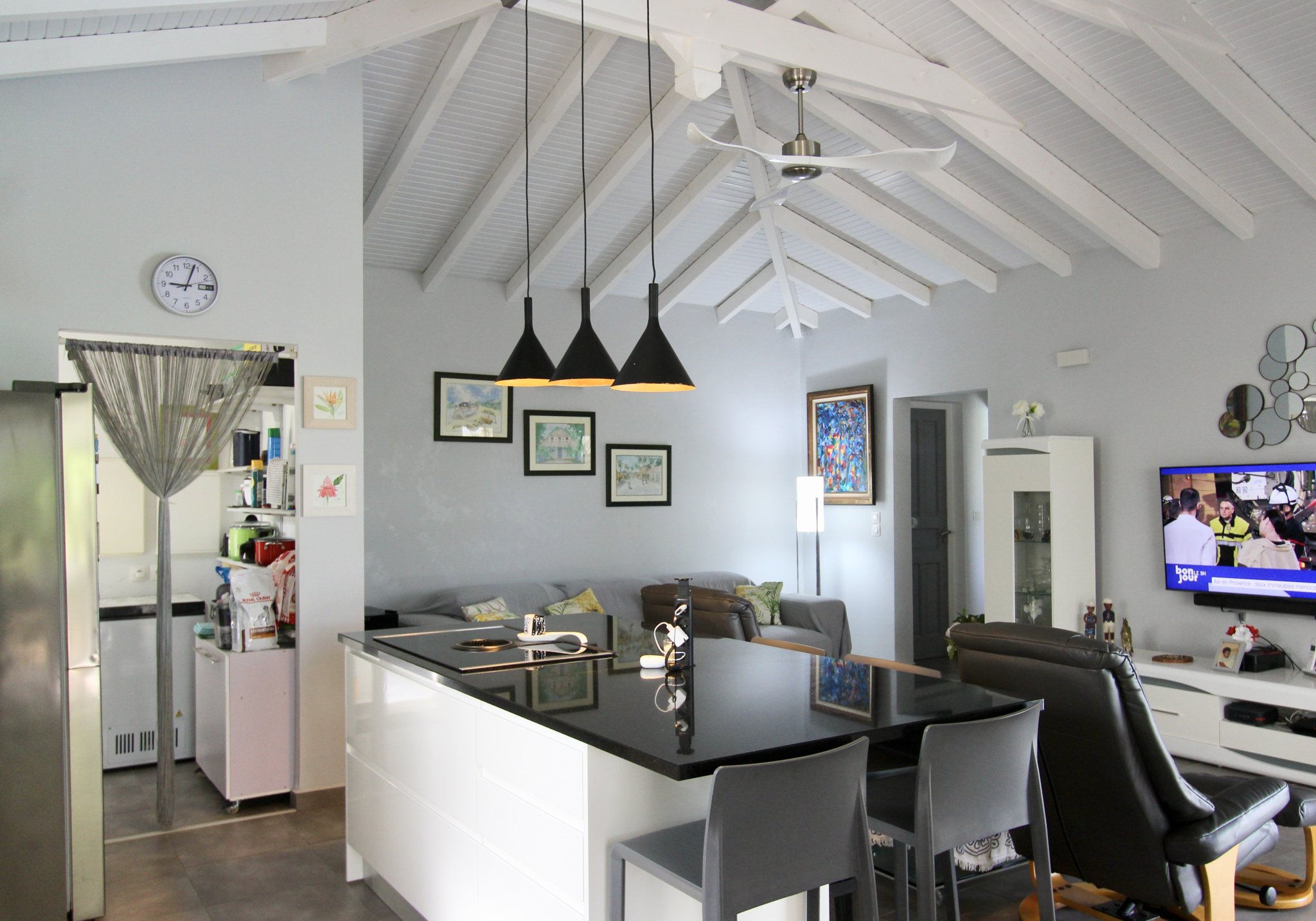 Dès l’entrée, vous découvrirez une agréable pièce de vie baignée de lumière, avec une belle hauteur sous plafond et une ventilation naturelle appréciable. La cuisine moderne, ouverte sur le séjour.