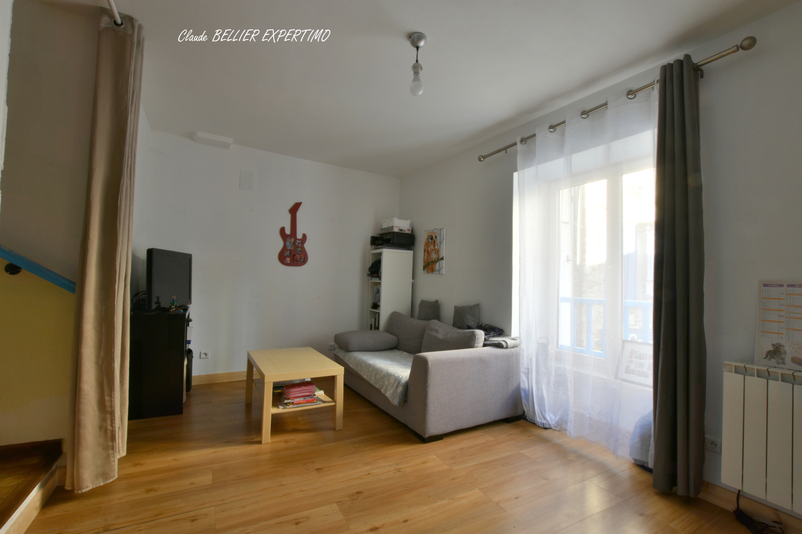 A noter la présence d'un conduit de cheminée tubé dans le salon qui permet d’envisager l'installation d'un poêle à granules ou à bois afin de chauffer aussi les 3 chambres au-dessus et d'améliorer la note énergétique