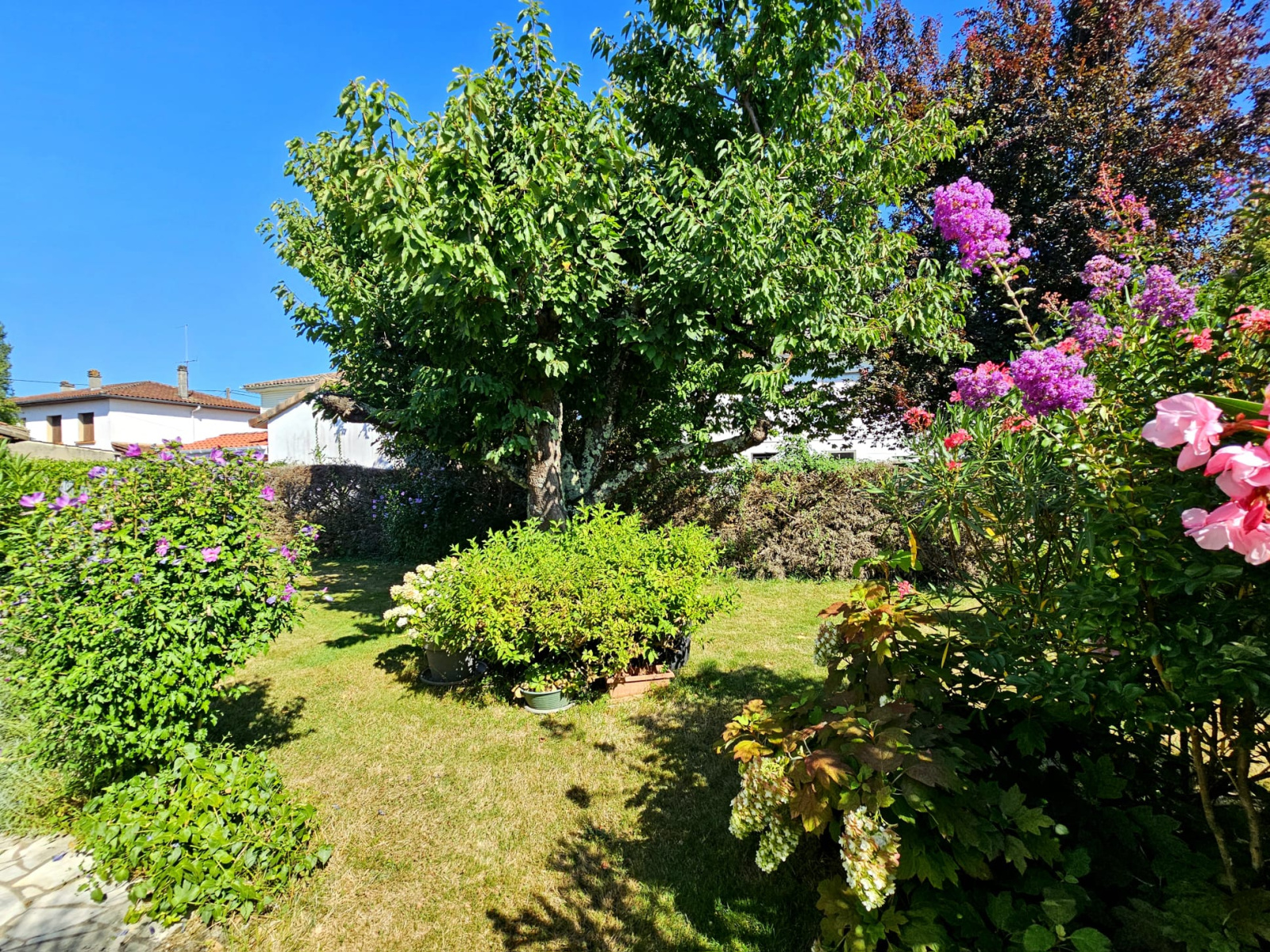 Le tout sur un jardin délicieusement arboré et fleuri de 498 m² . Il est clôturé et fermé par un portail.