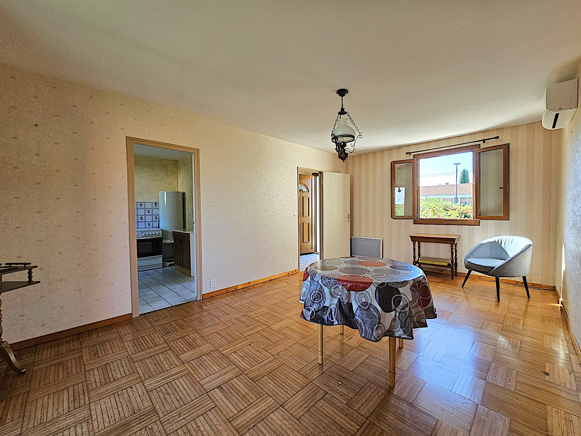La maison se compose d'une entrée dégagement, d'une cuisine indépendante à aménager, d'un salon salle à manger de 21 m² exposé Est- Ouest avec une superbe lumière traversante, de deux chambres avec dressing et sols en parquet flottant , d'une salle d'eau (avec douche italienne, meuble une vasque et coin lave-linge) et de WC indépendants.