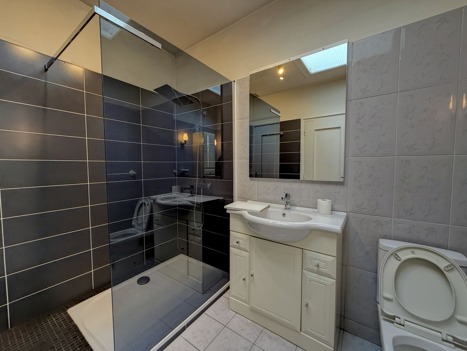 Elle se compose d’une entrée, d’une cuisine aménagée, d’un grand salon de 33m² avec cheminée, d’un bureau, de deux chambres ainsi que d’une salle d’eau moderne avec douche à l’italienne et WC.