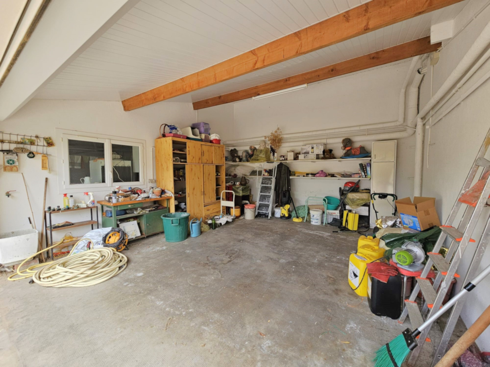 sol béton, lambris PVC plafond Porte motorisé Accès cave 9 m2