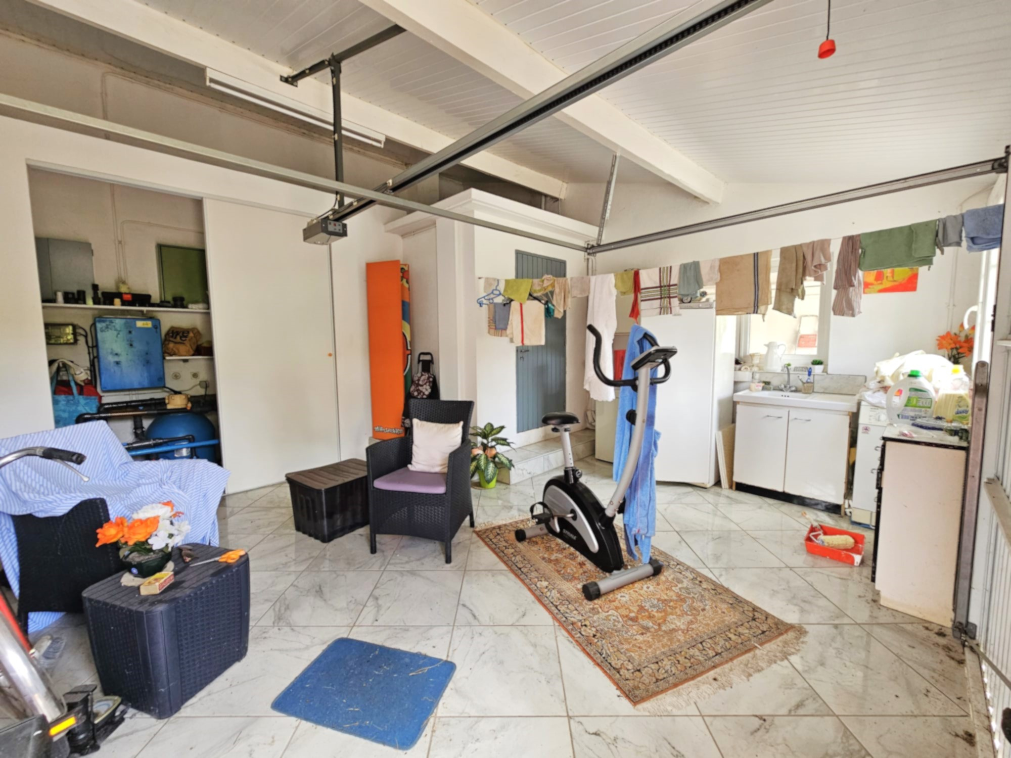 Sol carrelé Buanderie Chaufferie Local technique Porte motorisée