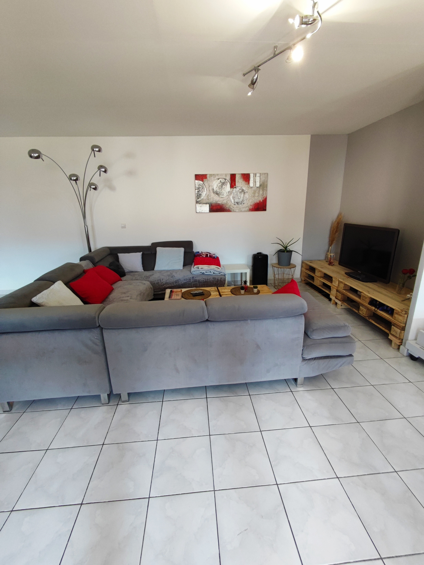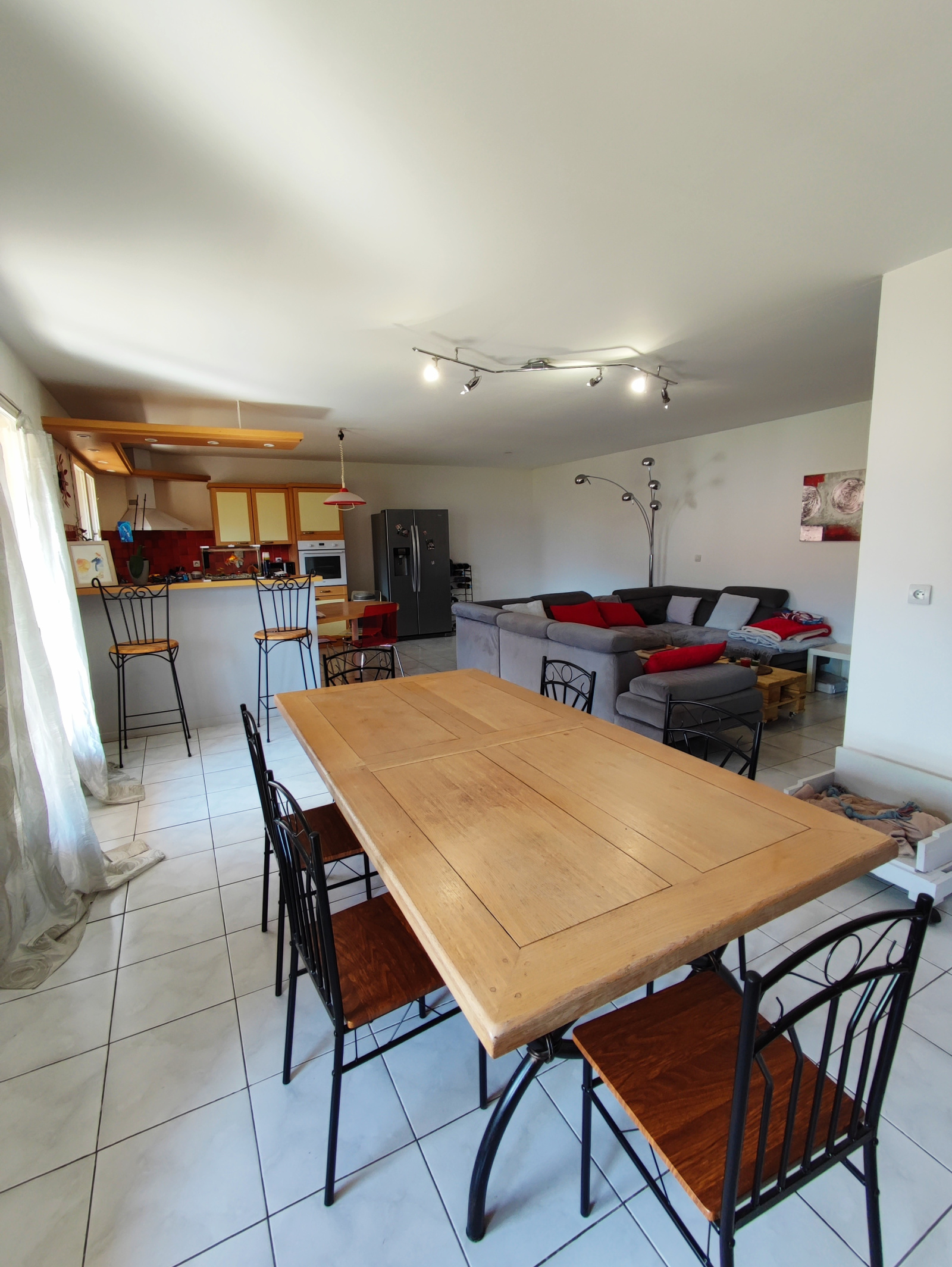L'espace de vie se trouve à l'étage avec une belle pièce de plus de 50m2 avec cuisine ouverte et une terrasse, vous disposez également à l'étage de deux chambres, une salle de bains et un wc séparé.