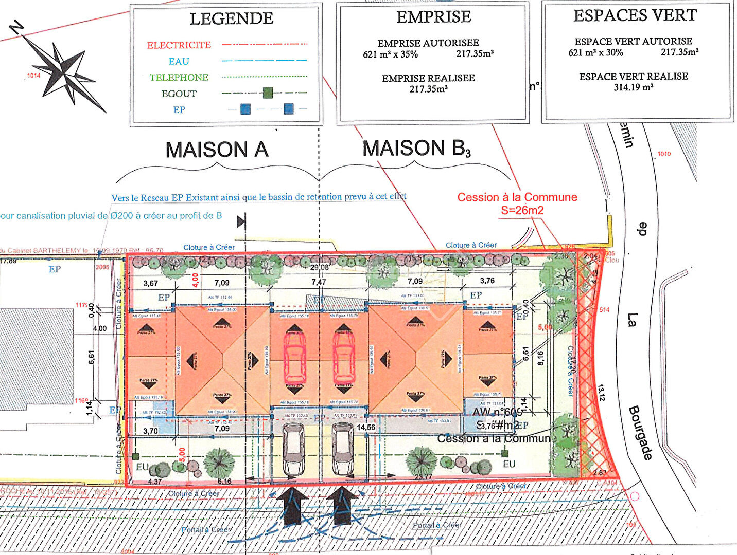 En limite de zone constructible et à 2 pas des commerces. Terrain constructible de 595m² avec vue sur des champs de vigne. Permis de construire accordé pour 2 villas mitoyennes avec garage. Chaque villa fait environ 112m² habitables avec 23 m² de garage. Viabilités à proximité immédiate. Quartier calme et recherché. Toutes les viabilités sont en bordure du terrain. Les informations sur les risques auxquels ce bien est exposé sont disponibles sur le site Géorisques http://www.georisques.gouv.fr