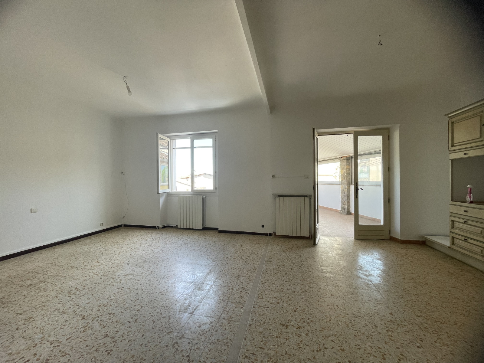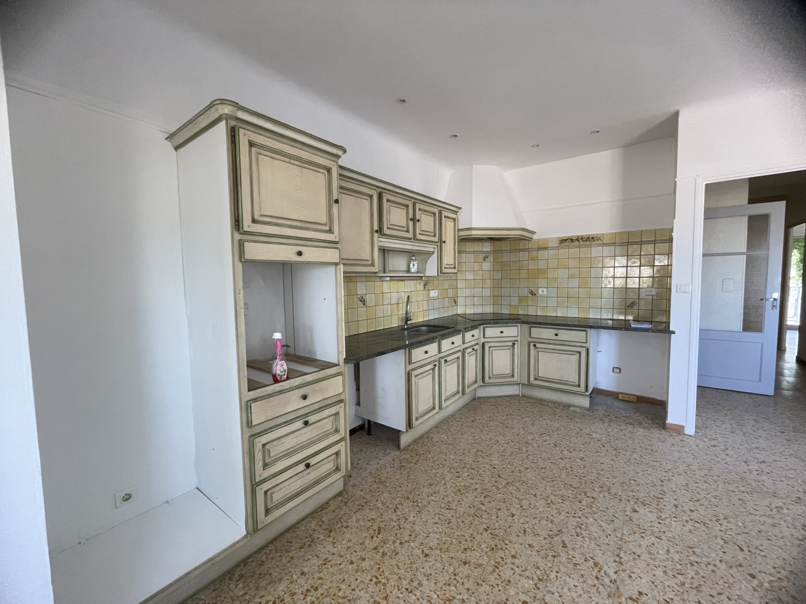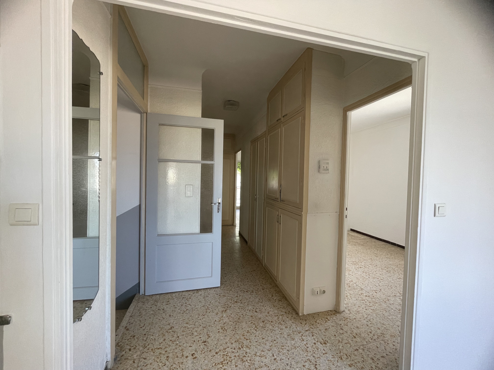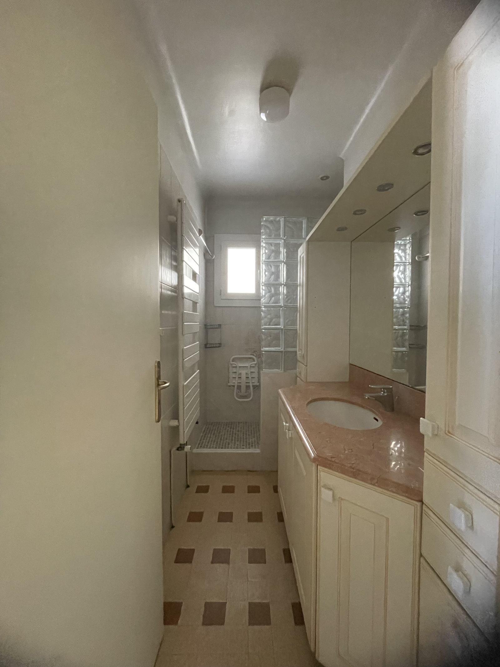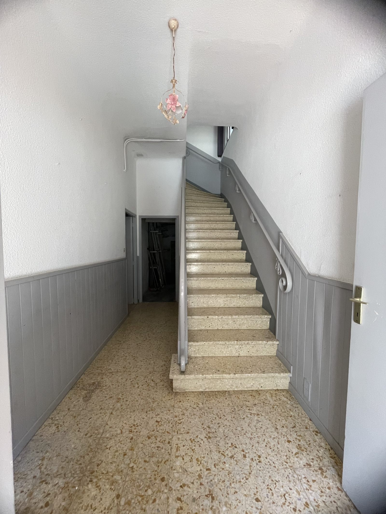 Cette entrée donne accés également au 1er étage ou se trouve un grand appartement 5 pièces. Cet appartement lumineux dispose d'une belle hauteur sous plafond. Il comprend une agréable pièce de vie séjour-cuisine-salle à manger (terrasse couverte type véranda) 3 chambres, une salle de douche, un wc, un balcon supplémentaire. Plusieurs placards intégrés dans le couloir et dans une des chambres. La cuisine est aménagée et semi équipée. Le chauffage et l'eau chaude sont alimentés par une chaudière fioul nouvelle génération changée en 2020.Une des chambres est également équipée d'une clim réversible. Les peintures sont propres et refaites en grande partie. Dans le cadre d'un investissement locatif, ce logement pourrait etre loué au mois entre 750 et 800 € HC.