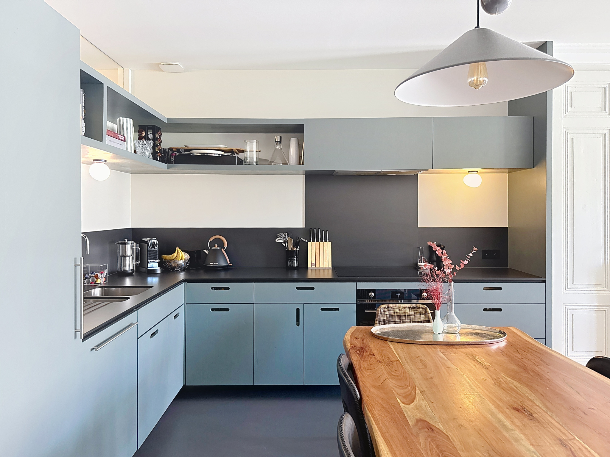Dès l’entrée, le ton est donné : placards sur mesure, volumes harmonieux et finitions impeccables. La pièce de vie de 30 m² baignée de lumière vous accueille dans une atmosphère chaleureuse, avec son parquet d’origine et sa cheminée décorative. La cuisine ouverte, parfaitement intégrée et entièrement équipée, séduit par sa fonctionnalité et son esthétique soignée.