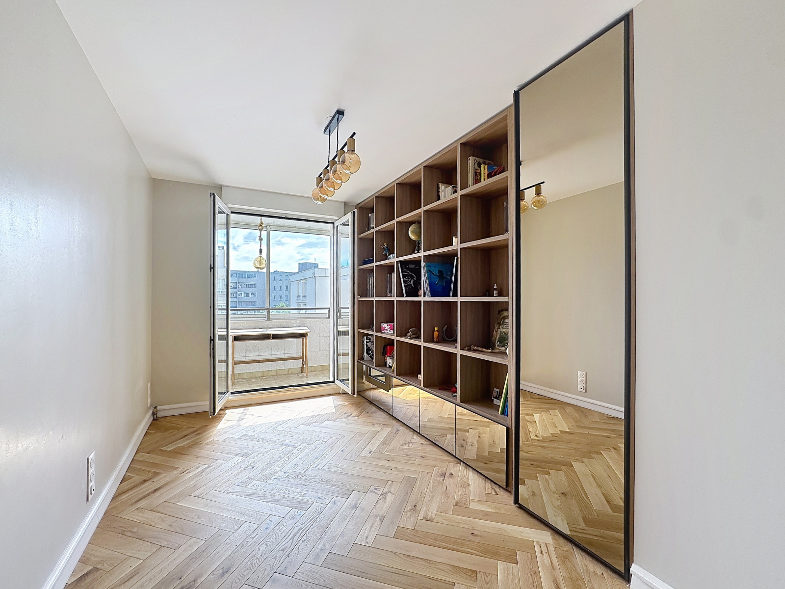 Une chambre principale, un bureau (possibilité chambre supplémentaire,1 dressing aménagé, une salle d'eau, WC indépendants suspendus avec douchette, dégagement et nombreux rangements, balcon et loggia