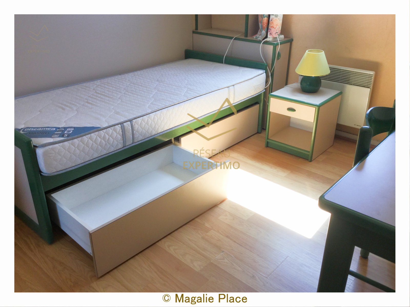 Studio plus grand qu'une chambre de Crous, aménagé pour être très fonctionnel avec kitchenette, wc et salle d'eau.