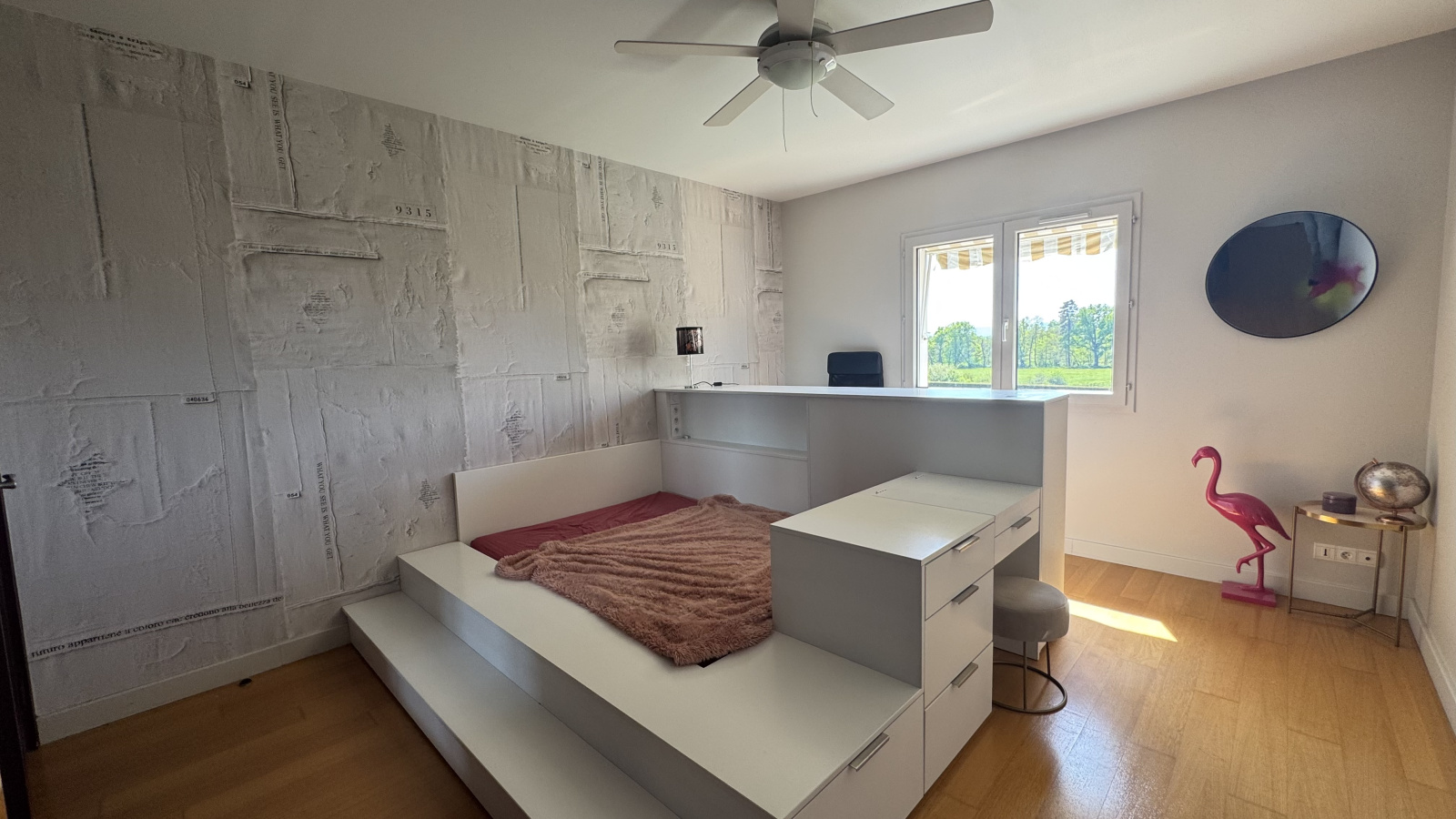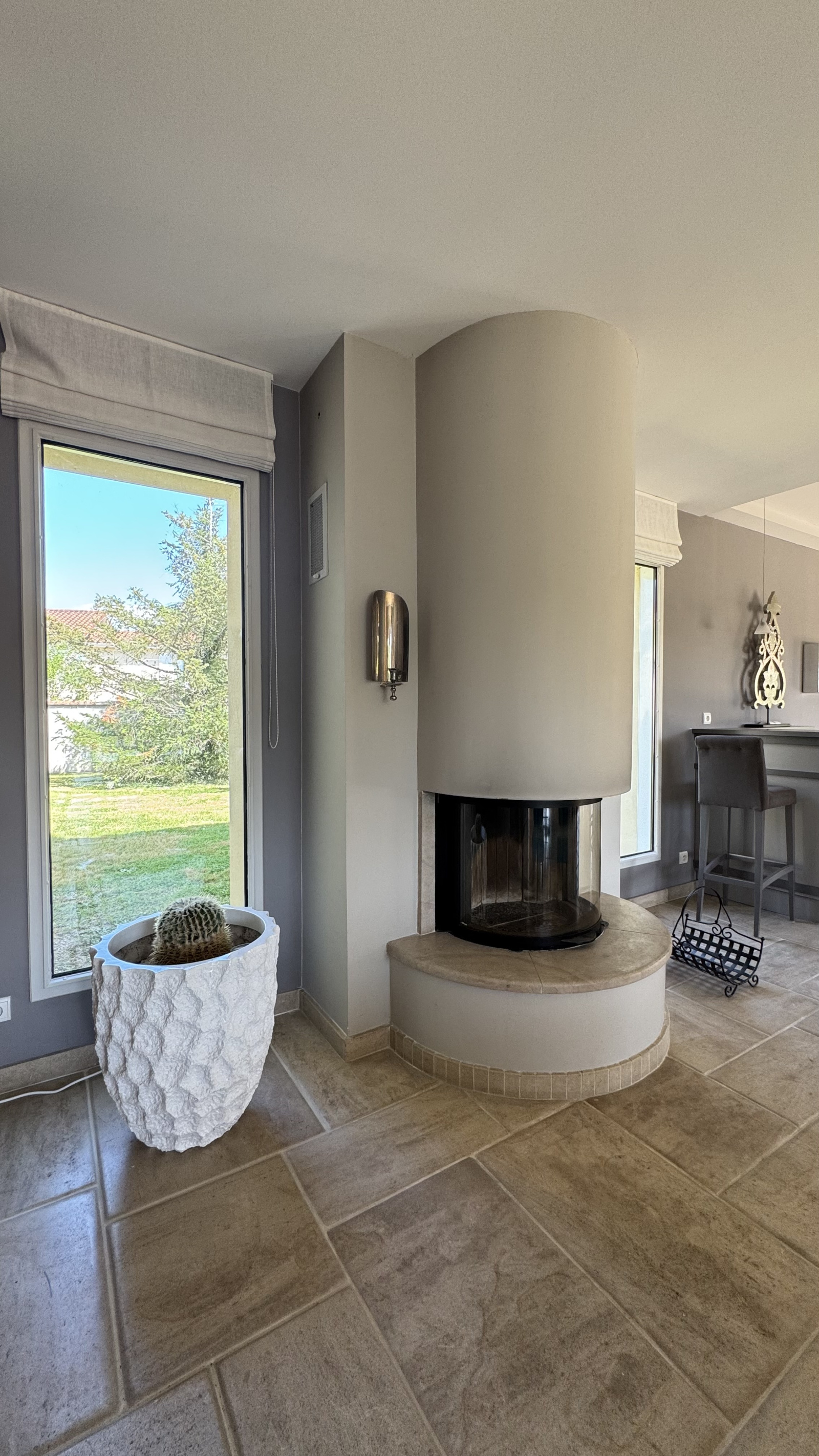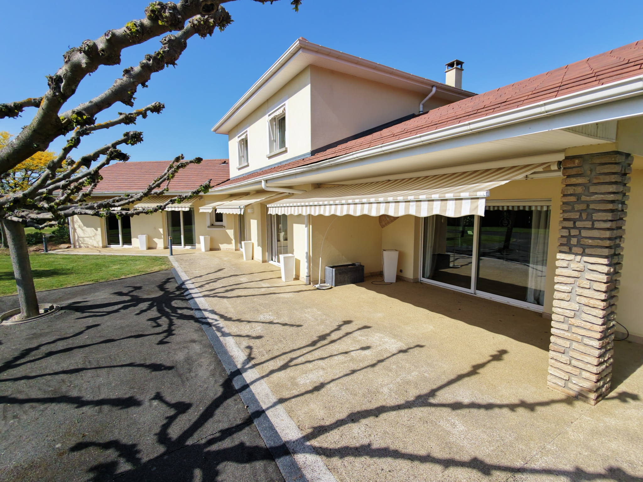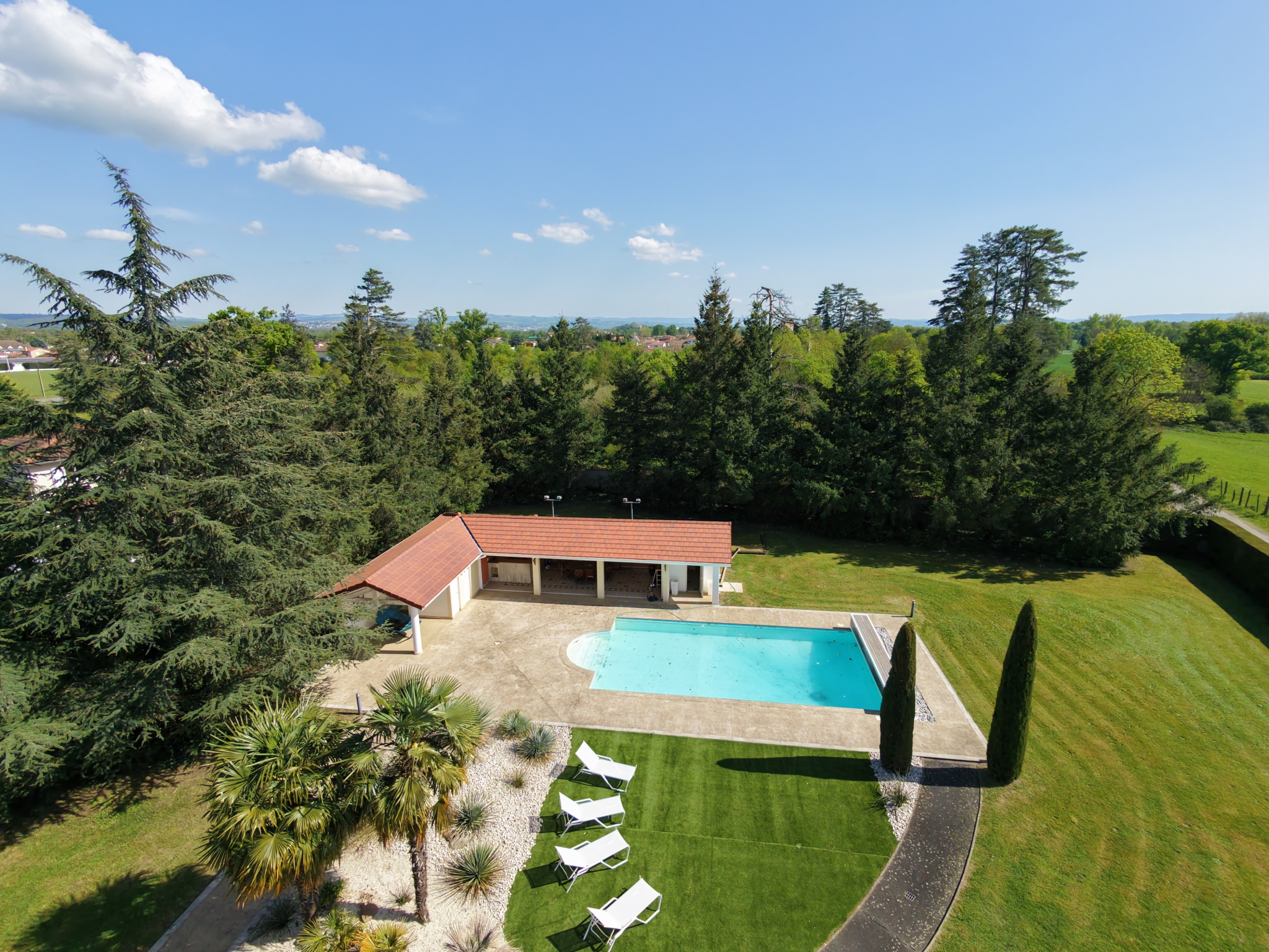 Maison contemporaine de 239m2 située sur une belle parcelle de terrain clos et arboré avec piscine et pool house. Celle-ci se compose d'un hall d'entrée donnant sur une grande pièce de vie avec cheminée et accès terrasse, cuisine aménagée attenante, bureau et un espace nuit parentale avec un vaste dressing et salle de bain, baignoire et douche. wc. En partie supérieure de la maison, 2 chambres avec chacune un dressing et une salle d'eau privative. wc. Cellier et garage ainsi qu'une pièce en mezzanine. L'ensemble bien entretenue; chauffage par le sol. En extérieur, un ensemble de 4 gragae et un carport. Une belle piscine avec son pool house équipé, terrain de pétanque. DPE C 168 GES D 35. Contact: 0781025567