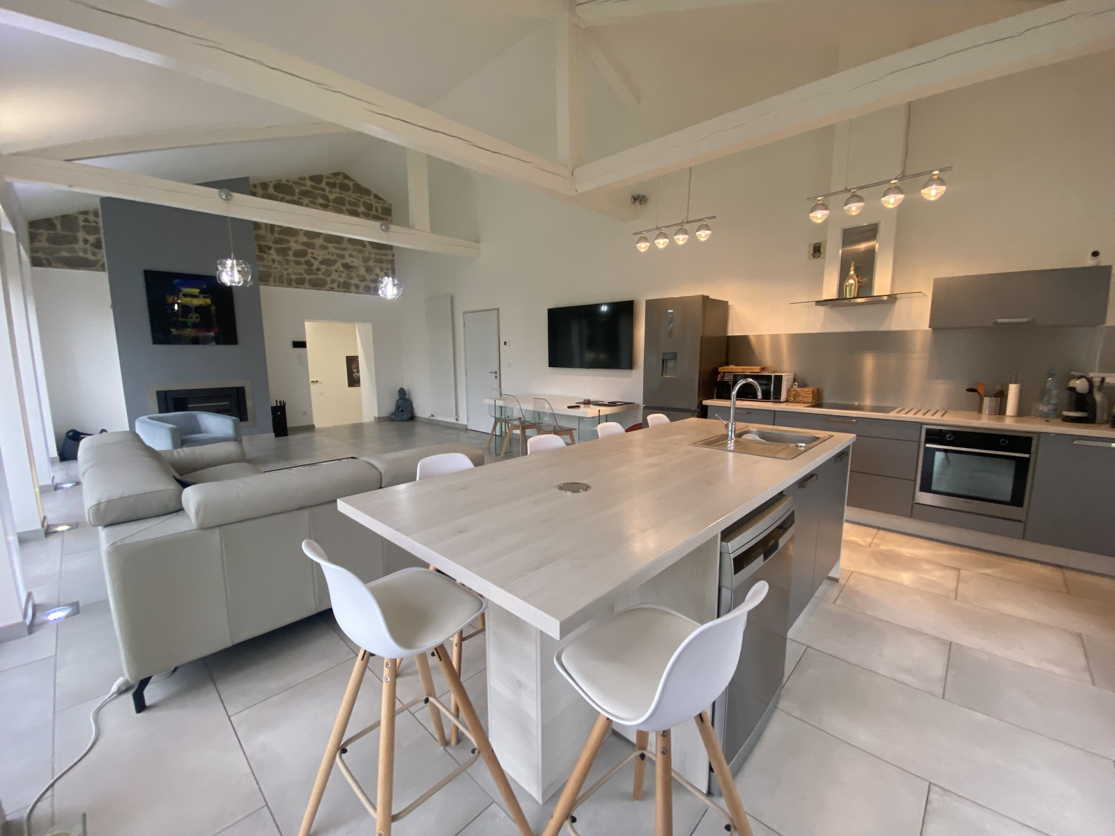 Rare sur le secteur ! Cette maison de caractère de 216 m² offre un cadre de vie unique, alliant charme, volumes et prestations haut de gamme. Vous serez séduit par sa superbe pièce de vie de 50 m² baignée de lumière avec cheminée et cuisine équipée donnant sur terrasse , idéale pour recevoir.