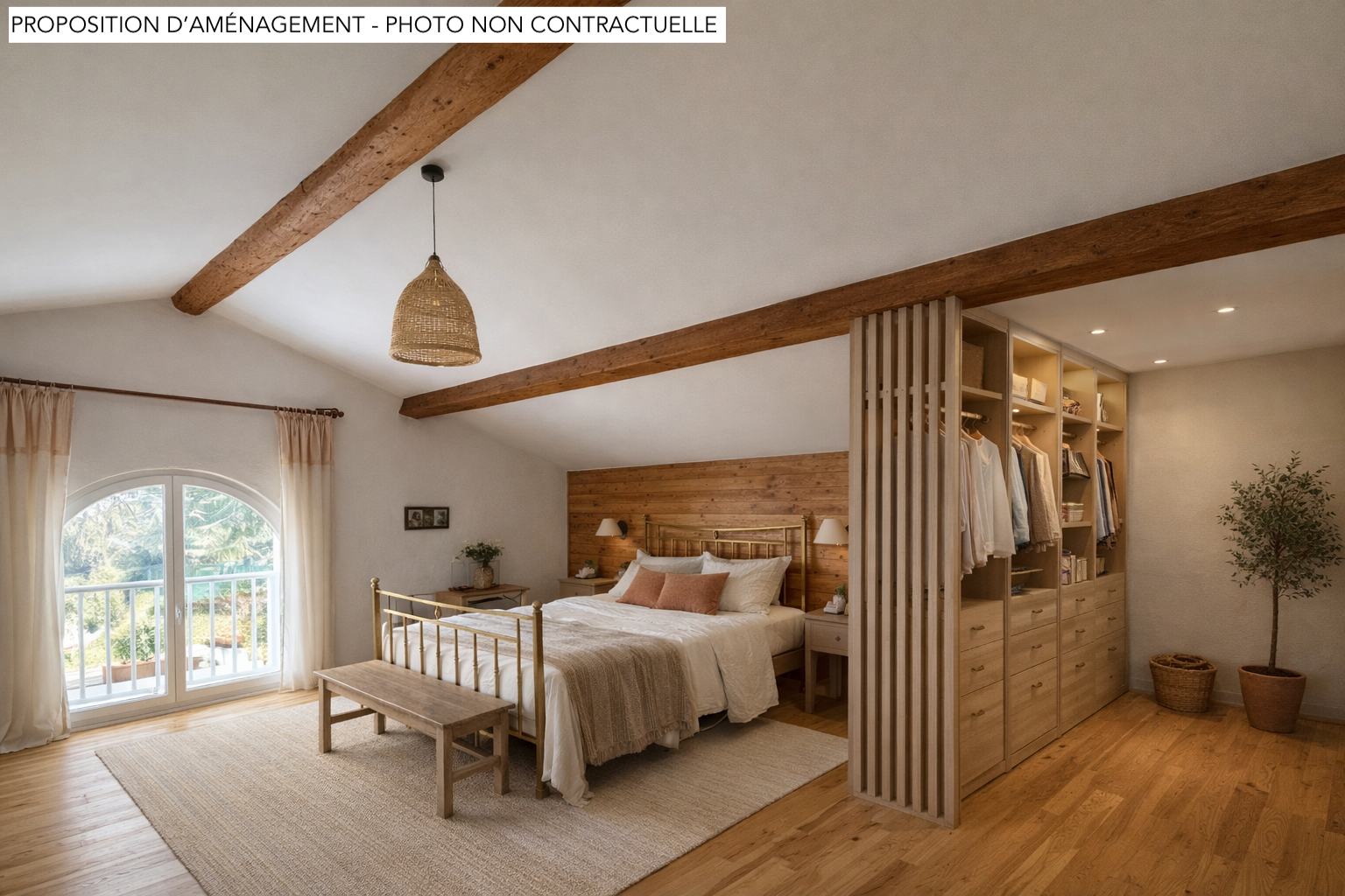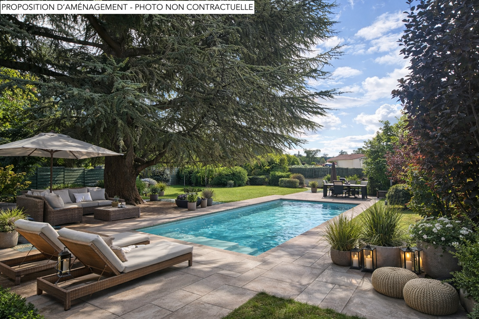 L'extérieur, entièrement plat et clôturé sur une parcelle de 945 m2, constructible et piscinable, constitue un véritable atout : un cadre idéal pour imaginer une terrasse ombragée, un jardin style méditerranéen et une piscine, en parfait harmonie avec l'esprit de la maison.