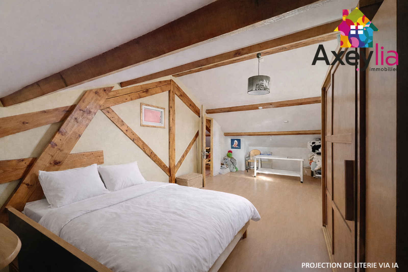une grande chambre sous rampant,