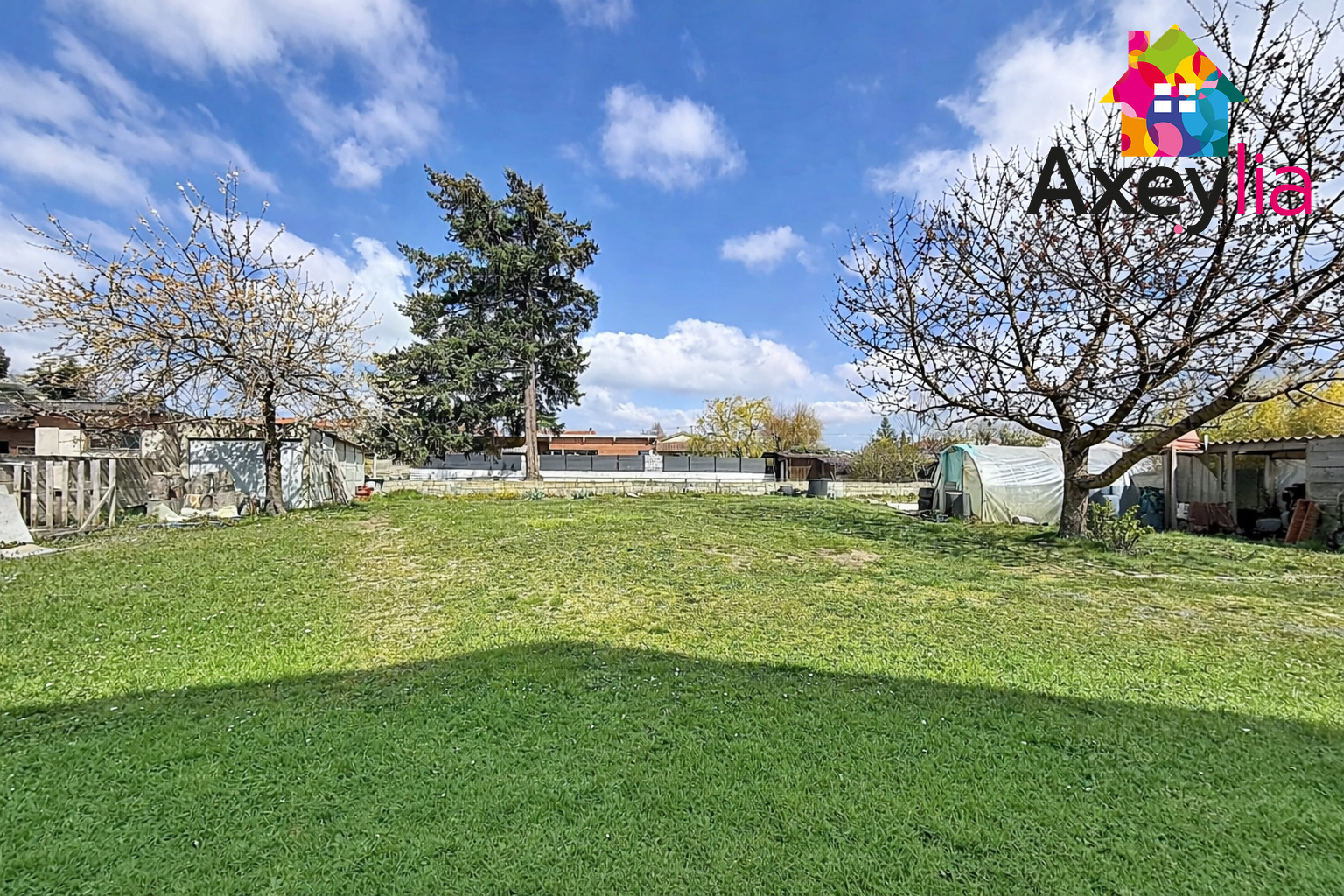 Le terrain d’environ 1500 m² entoure la maison et propose plusieurs zones exploitables. Sa configuration permet différents aménagements selon les besoins (jardin, jeux, stationnement, espaces détente).
