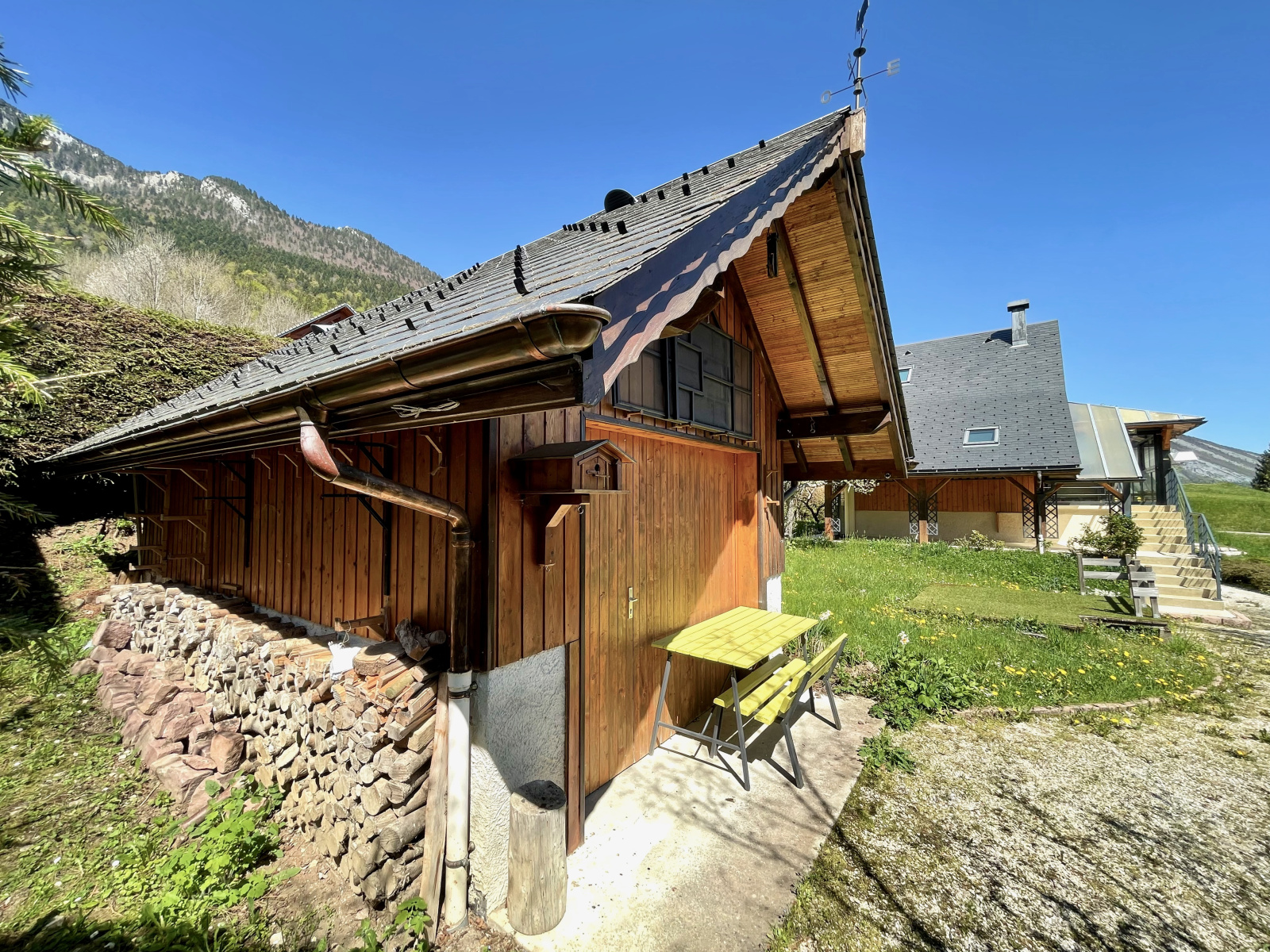 En EXCLUSIVITÉ, vous serez sous le charme de ce magnifique chalet, avec son terrain et sa construction annexe, le ruisseau à proximité, le tout avec une vue panoramique sur les montagnes