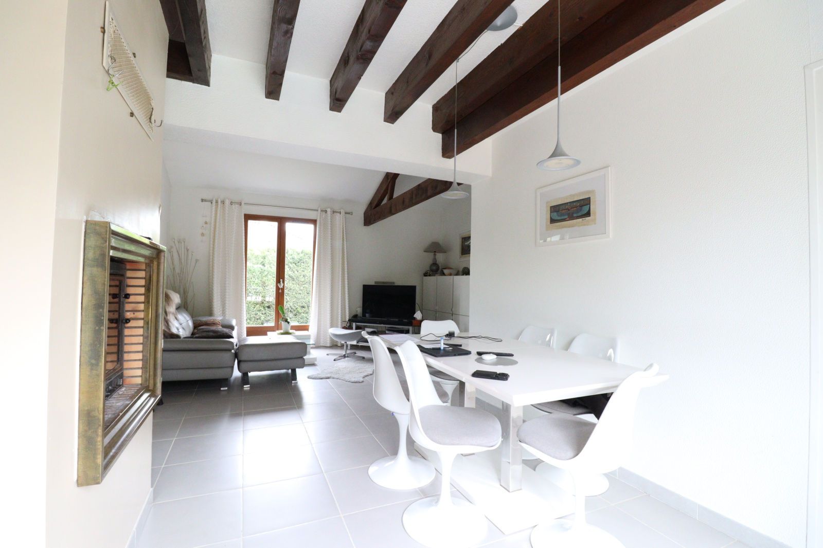 Parfaitement entretenue, cette propriété de 115 m² sur deux niveaux vous séduira par ses prestations de qualité et son cadre de vie agréable. Dès l’entrée, vous apprécierez une cuisine semi-ouverte donnant sur un vaste double séjour traversant, baigné de lumière, agrémenté d’une cheminée avec insert. Le séjour s’ouvre directement sur une belle terrasse et une piscine, invitant à la détente et aux moments conviviaux en famille ou entre amis.