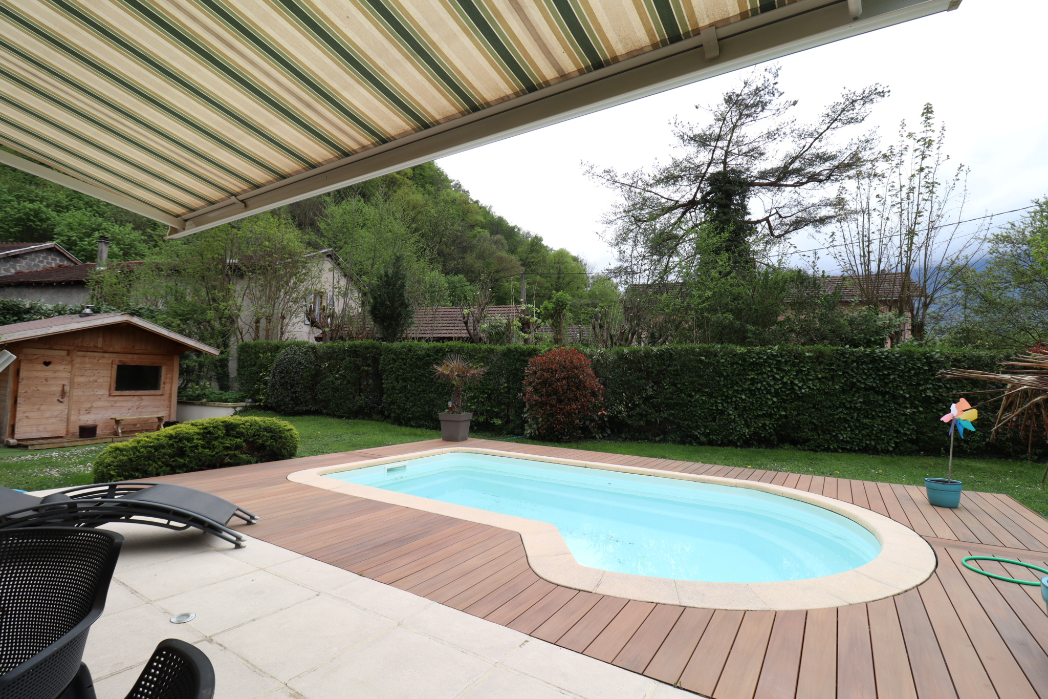 Implantée sur un terrain plat de 900 m², entièrement clos et arboré, la maison offre un extérieur soigné, sans vis-à -vis, garantissant tranquillité et intimité. Vous y découvrirez également un agréable sauna installé dans un chalet en bois, pour des instants de bien-être toute l’année.