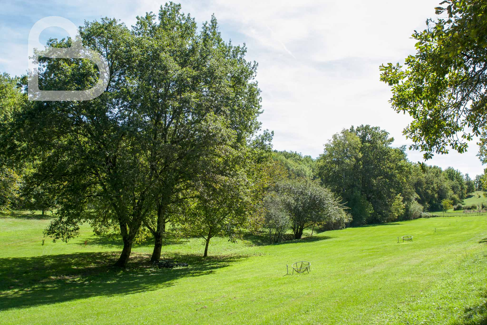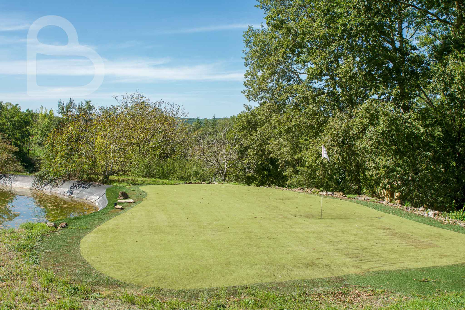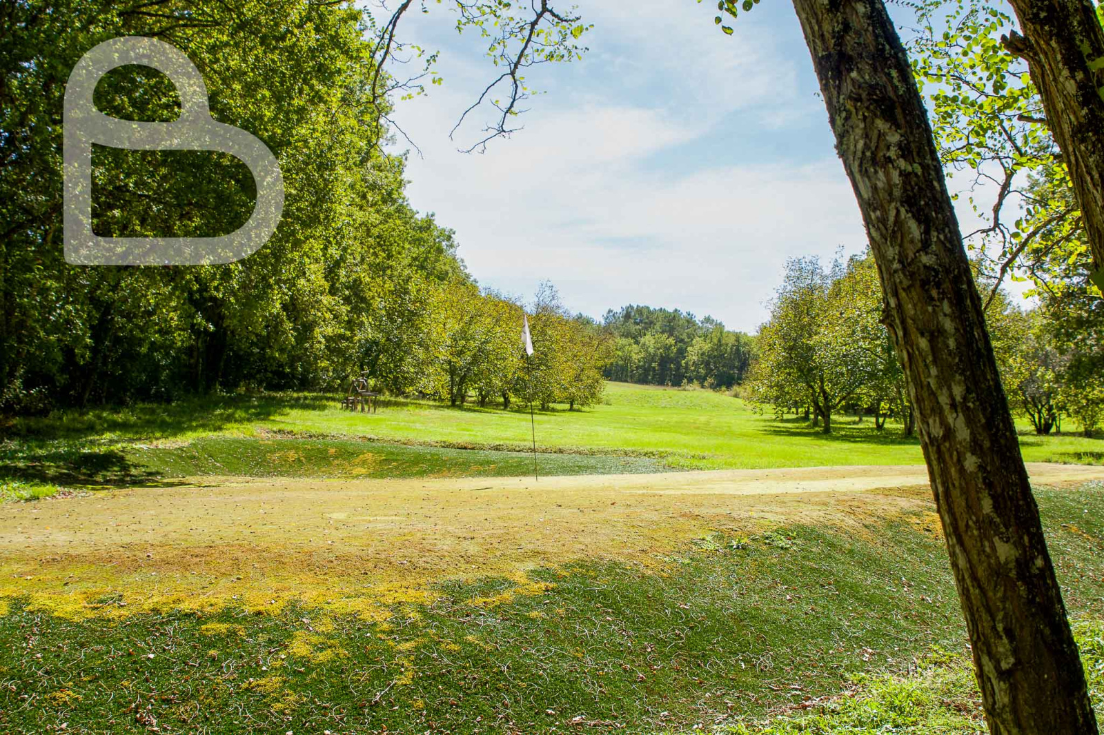 Le domaine s'étend sur environ 15 hectares, majoritairement classés en zone de loisirs (ce qui est rare!), et comprend un parcours de golf 9 trous, des plans d'eau, une parcelle de noyers, un grand hangar et un parking ombragé. Une piscine (6 × 12 m) complète l’ensemble.